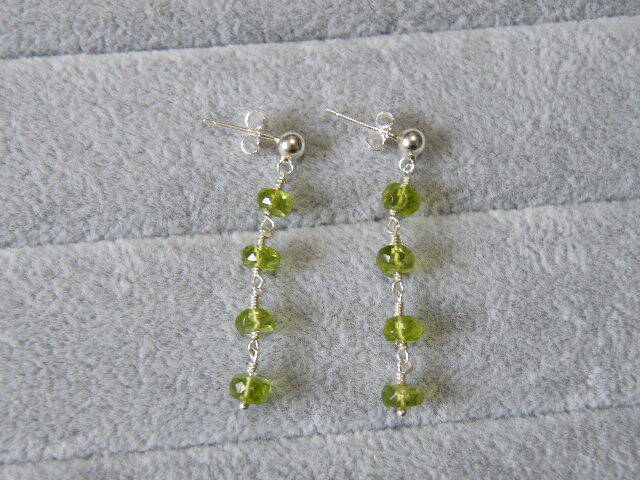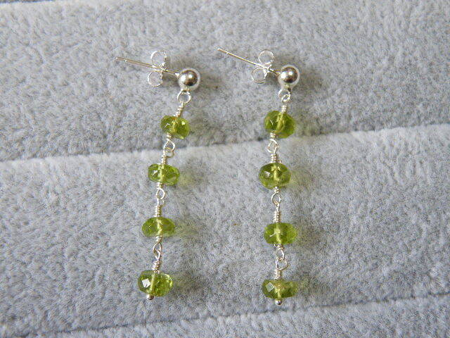 R00071.ペリドット シルバー925 ハンドメイド ロングピアス