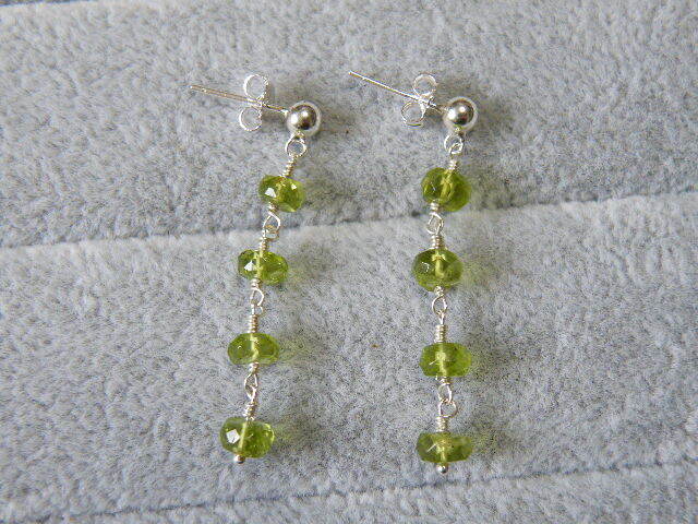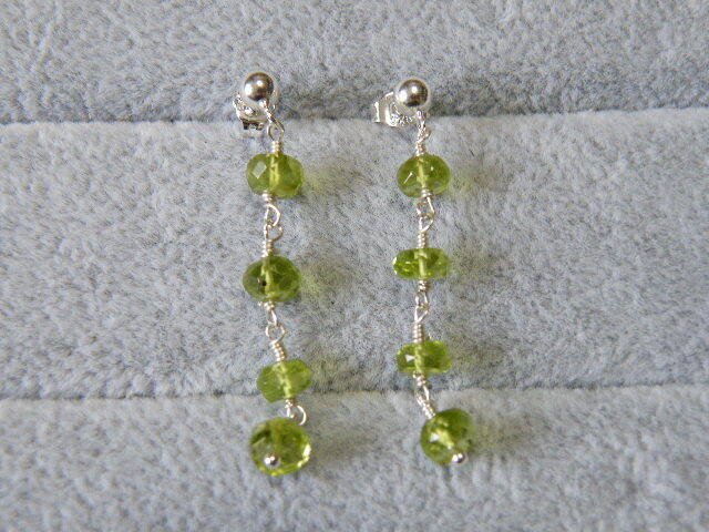 R00071.ペリドット シルバー925 ハンドメイド ロングピアス