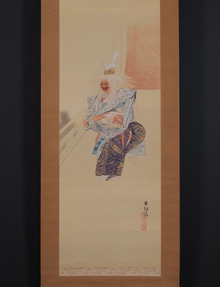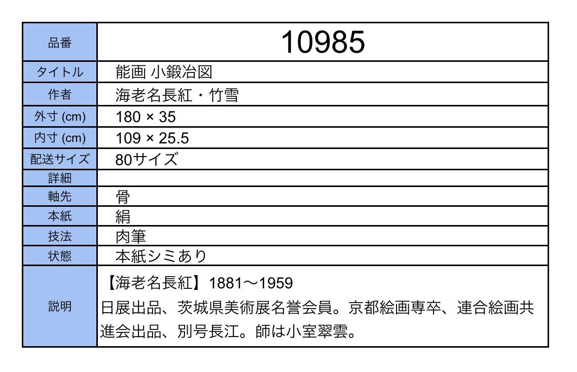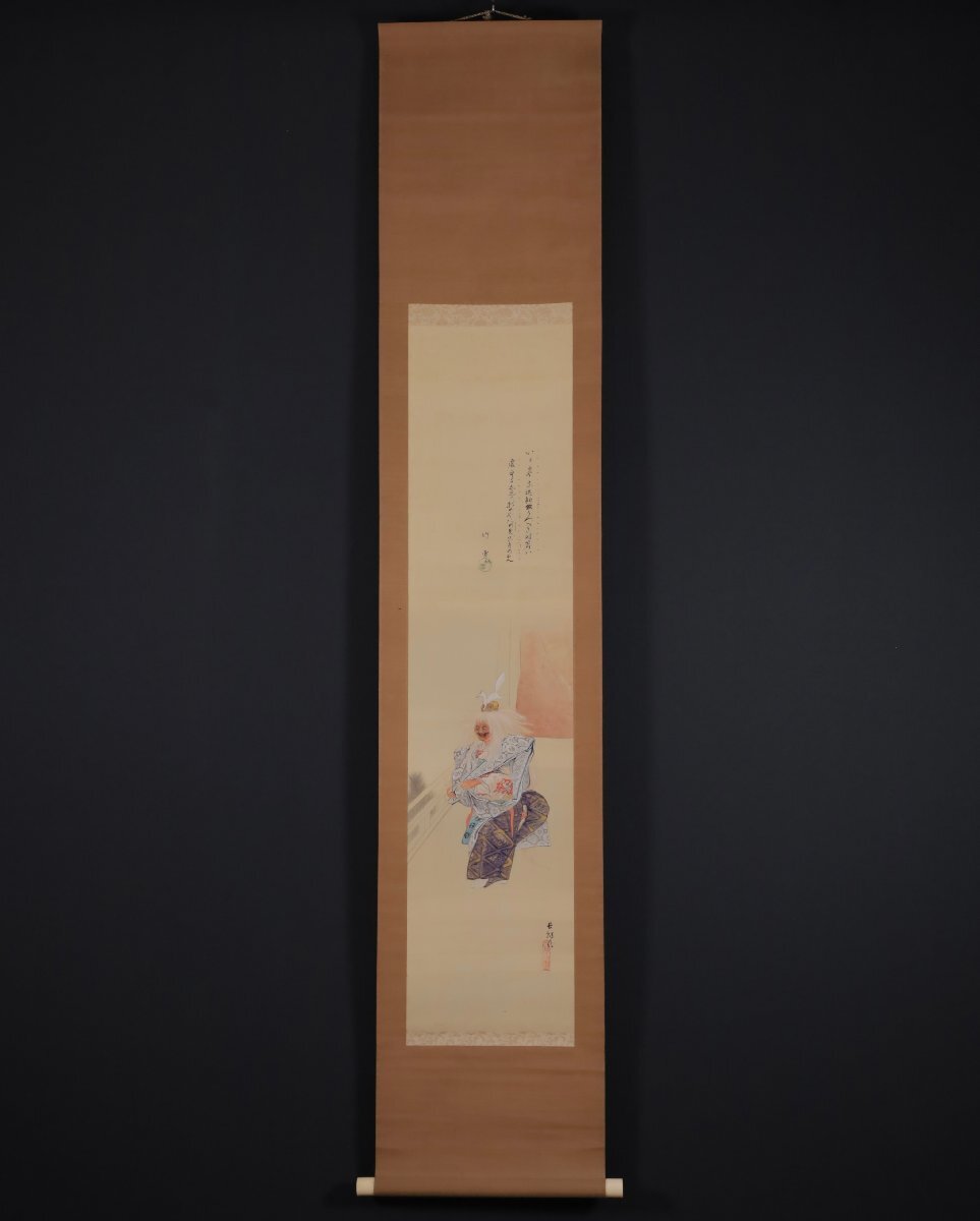【模写】吉】10985 海老名長紅・竹雪 能画 小鍛冶図 小室翠雲師事 茨城県 能楽 歌舞伎 物語絵 大和絵 風俗画 茶掛け 茶道具 書 掛軸 掛け軸