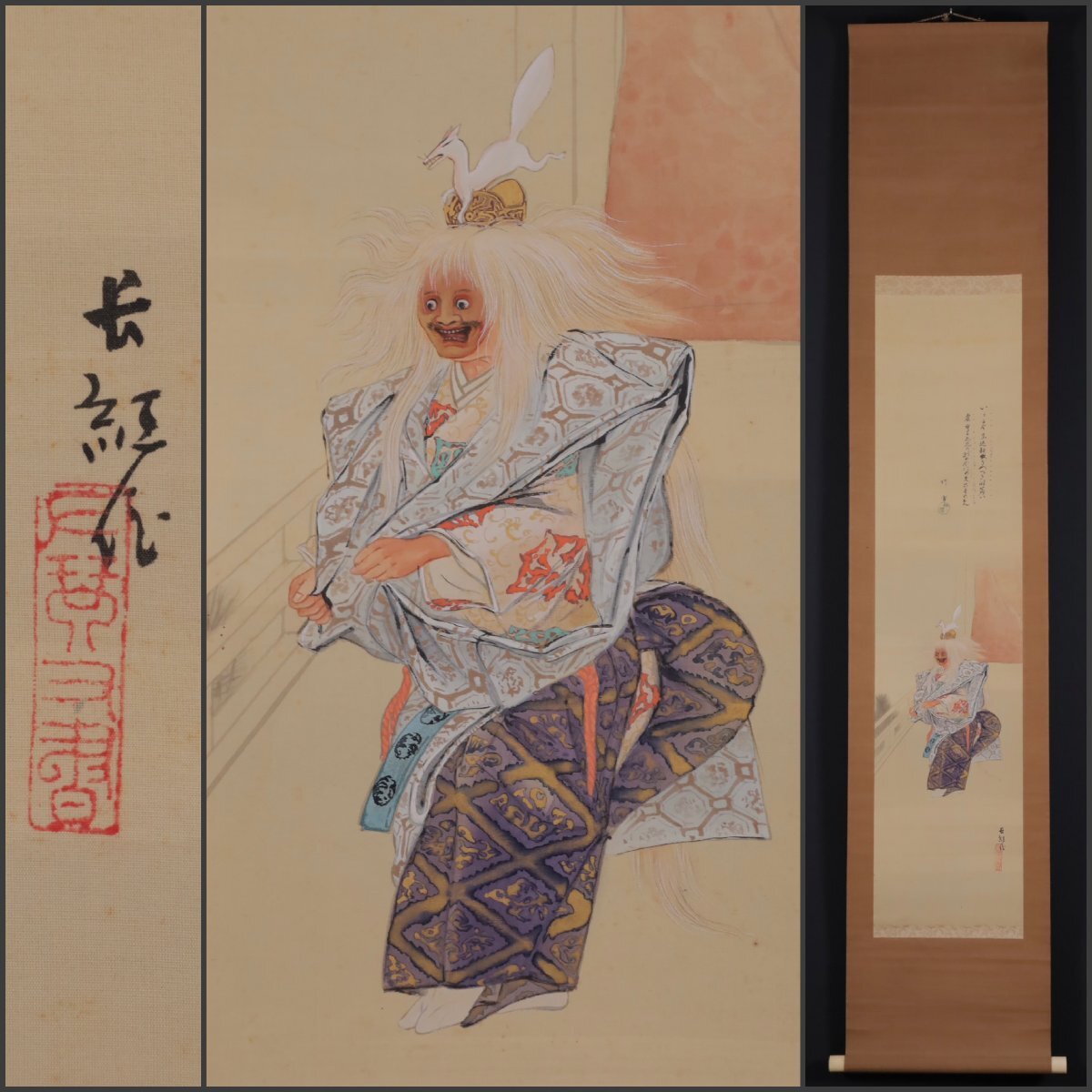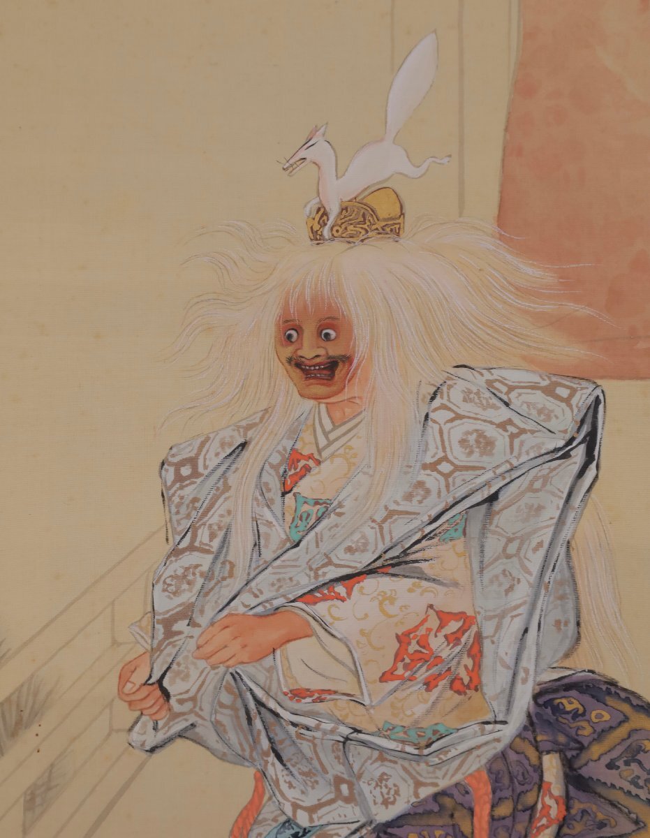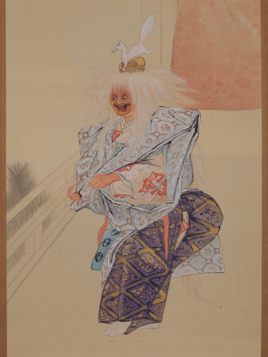 【模写】吉】10985 海老名長紅・竹雪 能画 小鍛冶図 小室翠雲師事 茨城県 能楽 歌舞伎 物語絵 大和絵 風俗画 茶掛け 茶道具 書 掛軸 掛け軸
