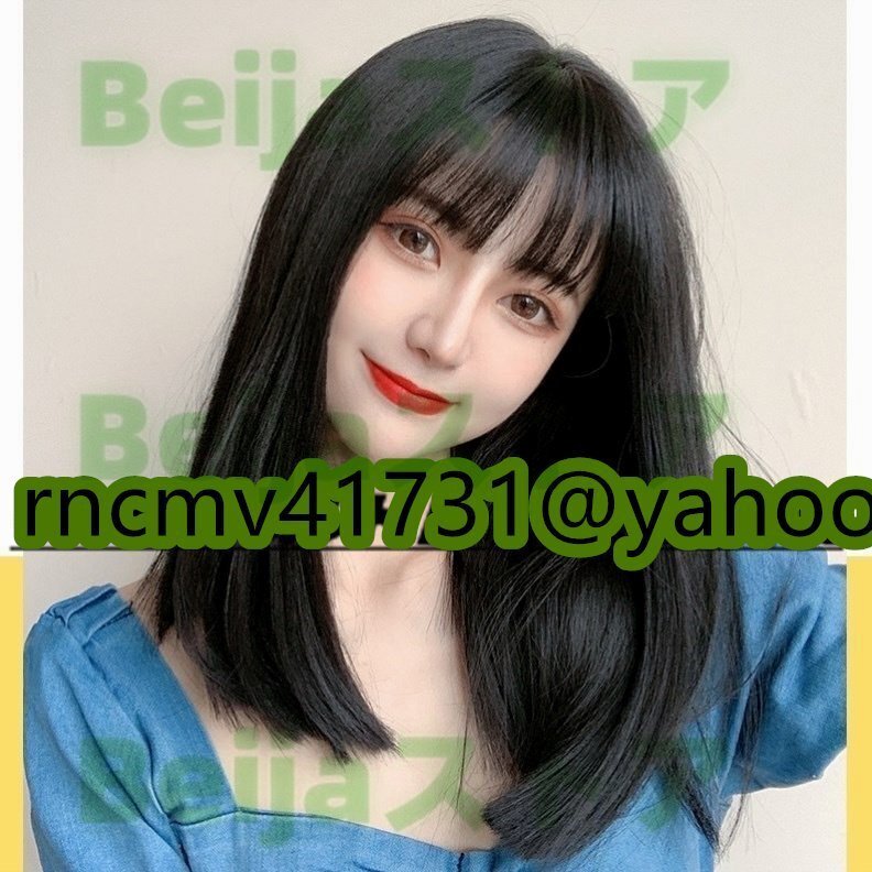 極美品★店長特選☆セミロングストレート姫カット ウィッグかつら