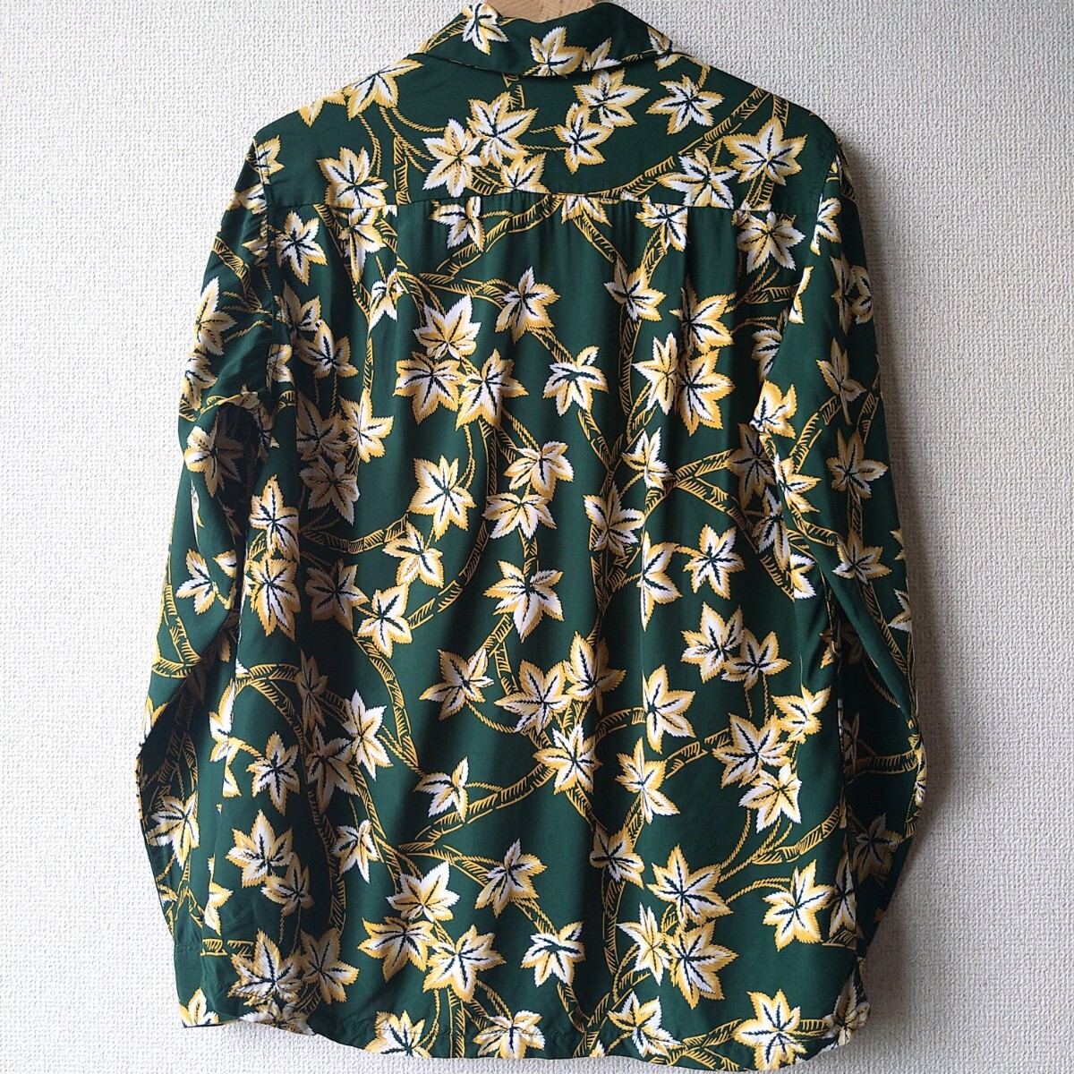 右胸ポケット下に小穴、上部左側付け根に負荷がかかったようなダメージがあります。レーヨン生地がやや水通しにより縮んだ感じがあります。他、特筆すべき汚れやダメージはありません。そもそも目にする機会のない50sの長袖アロハシャツ、KAHANAMOKUであることを考えるとまずまずなコンディションだと思います。