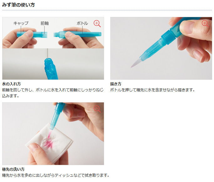 【材質】色軸=顔料・ワックス・オイル・界面活性剤 水筆=ナイロン・PP・POM・・PE