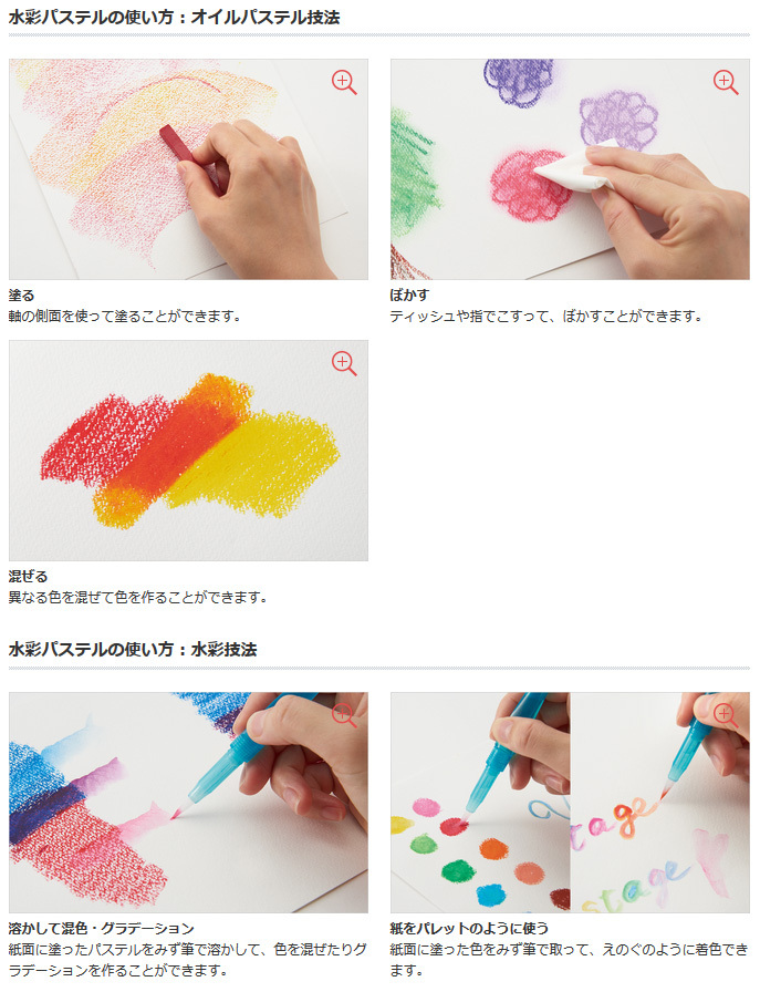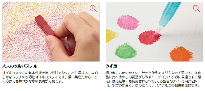 【特長】水に溶ける、なめらかタッチの水溶性オイルパステル