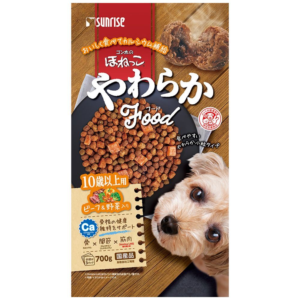 骨・関節・筋肉の健康維持に配慮したおいしく食べてカルシウム補給ができる健康サポートフードです。お肉と野菜をバランスよく配合し、ジューシーなやわらか小粒に仕上げました。10歳以上の愛犬の健康維持に配慮して、ビタミンE・B12を強化(成犬用比 約150%)配合。