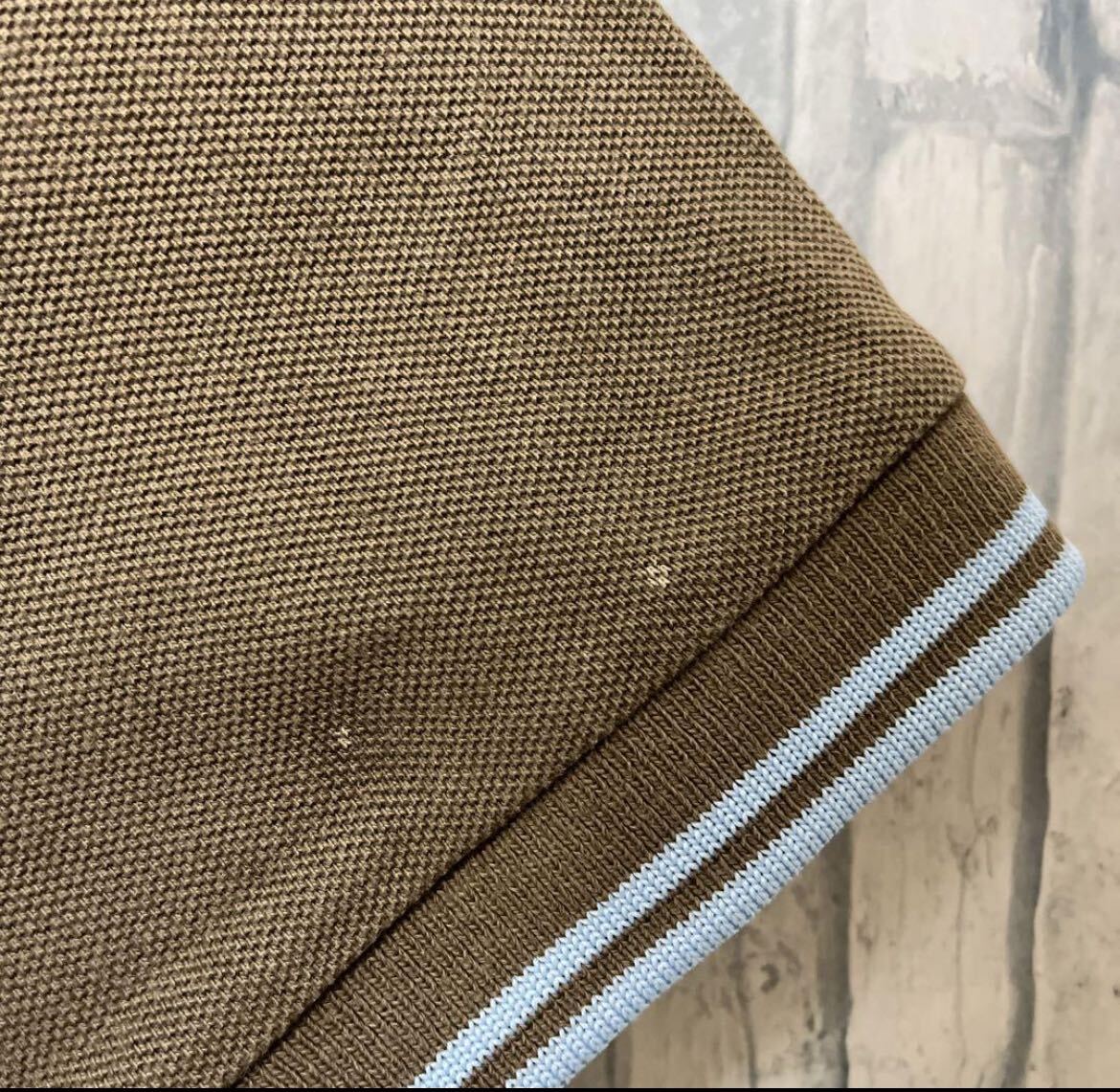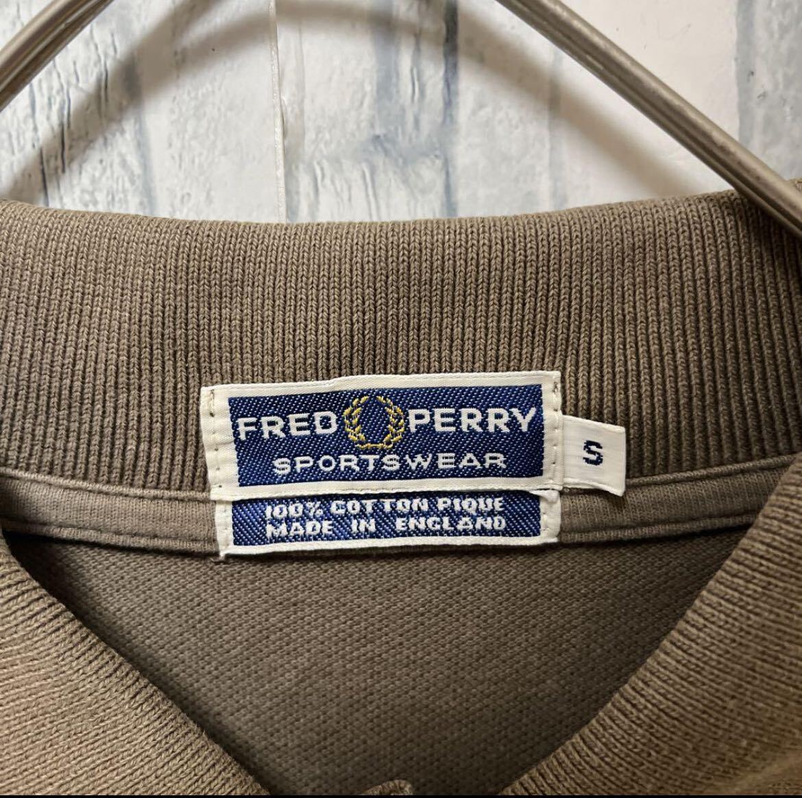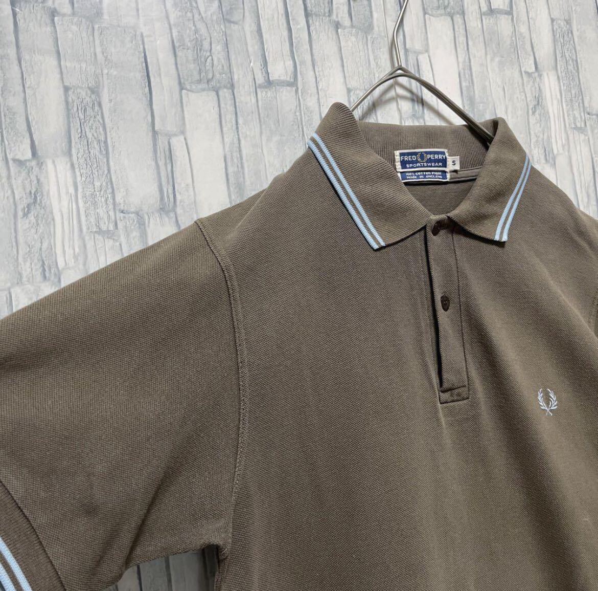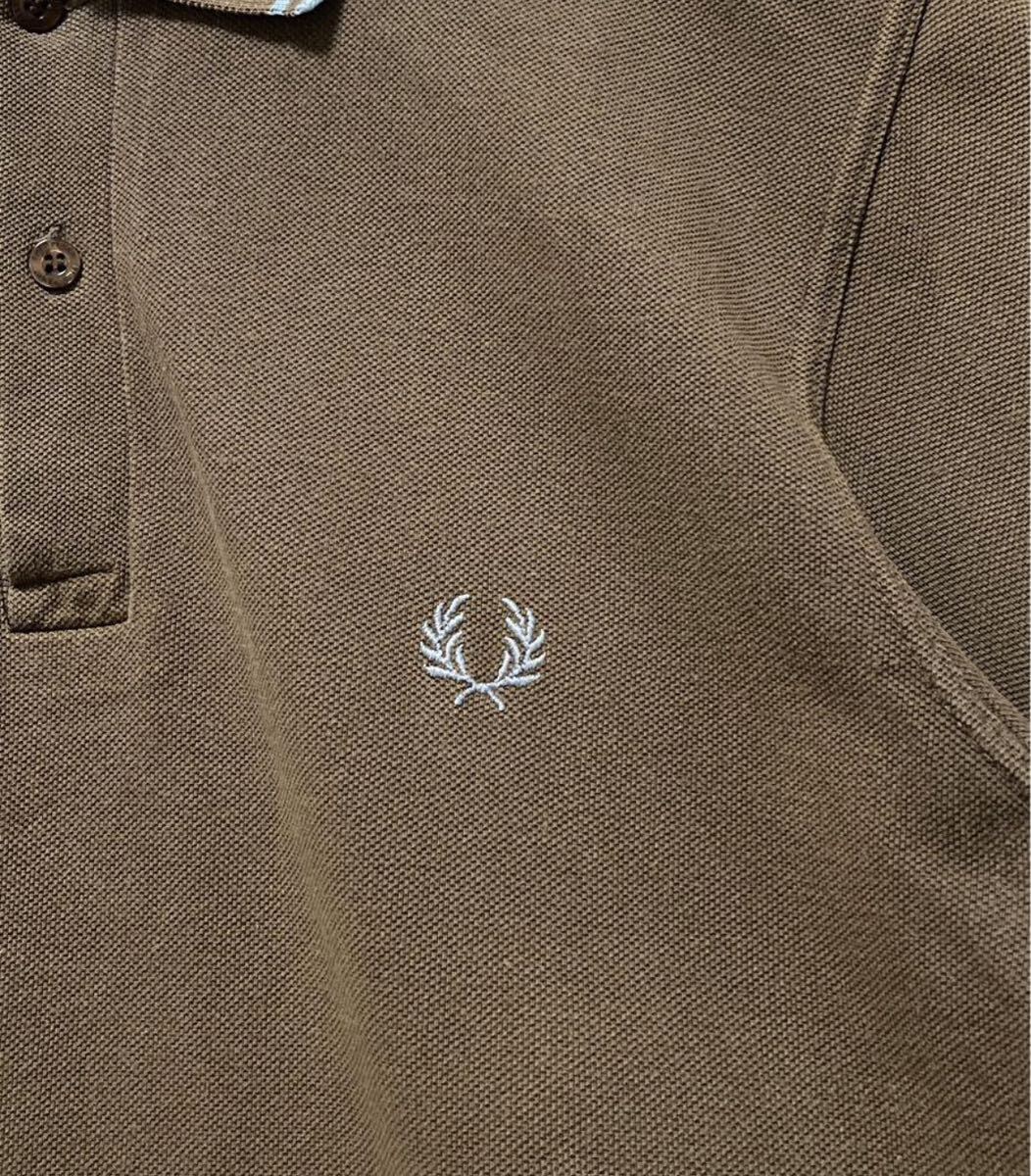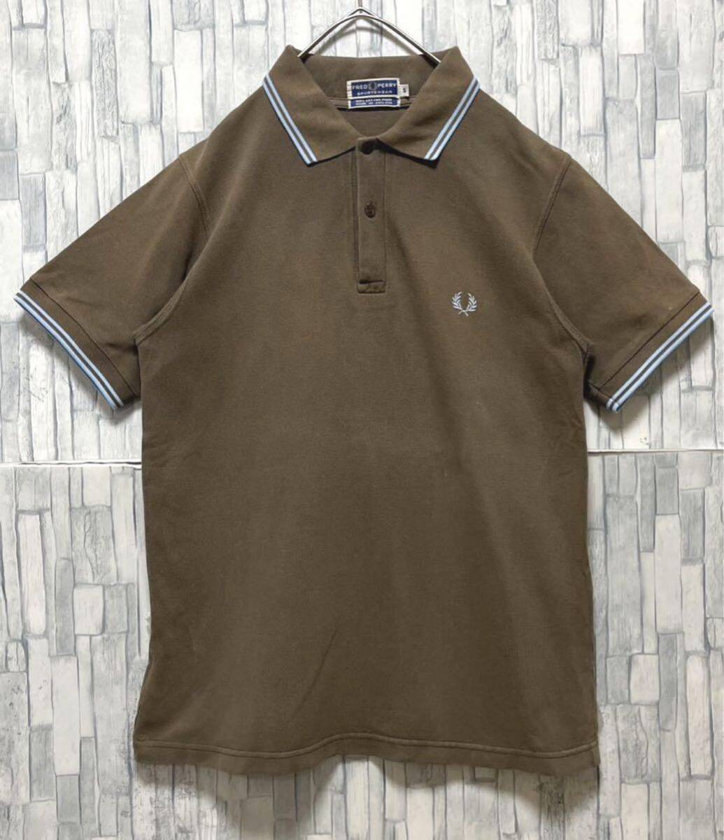 FRED PERRY フレッドペリー ワンポイントロゴ シンプルロゴ 刺繍 ポロシャツ サイズS 半袖 ブラウン イングランド製 英国製 鹿の子 リブライン フェード 送料無料の出品です。