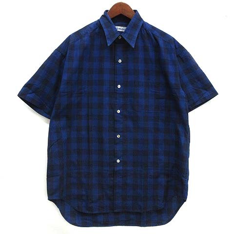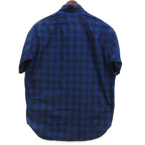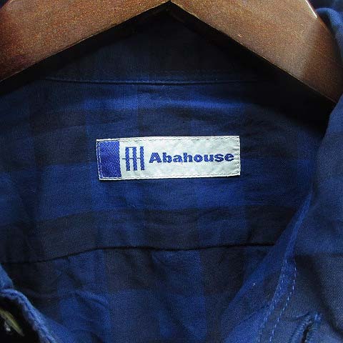 アバハウス ABAHOUSE ブロックチェック シャツ 半袖 コットン ネイビー 紺 F メンズ