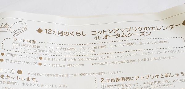 12ヶ月のくらし コットンアップリケのカレンダーの会 11.オータムシーズン です。