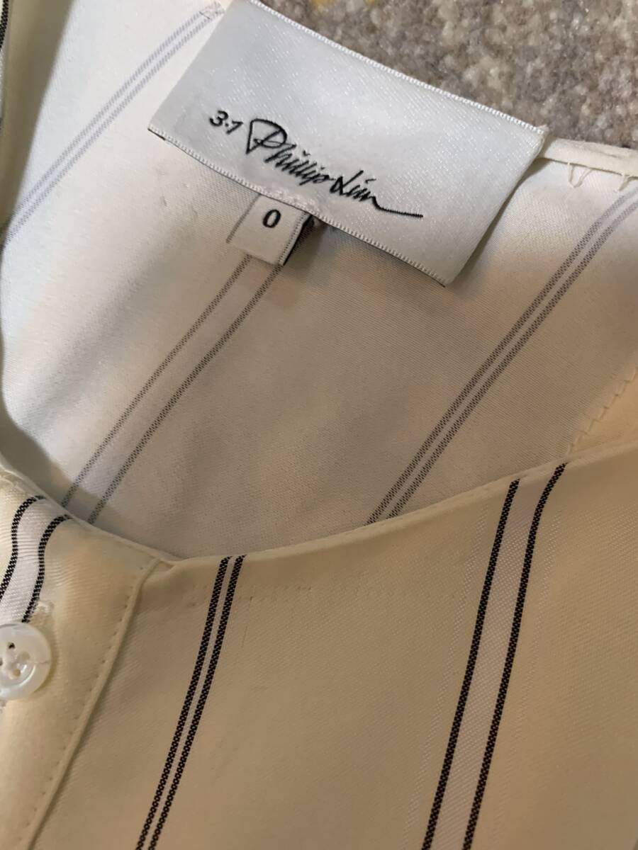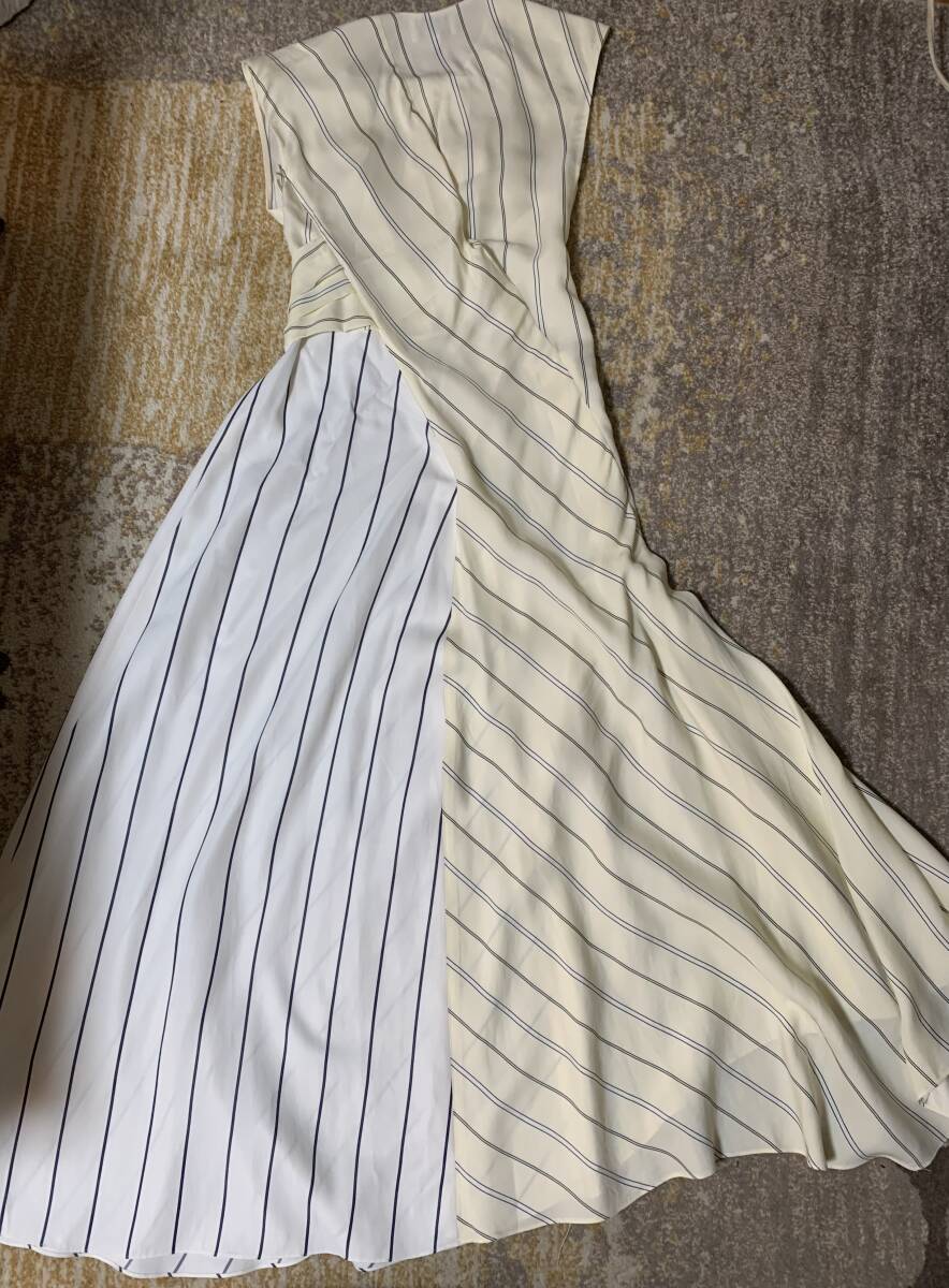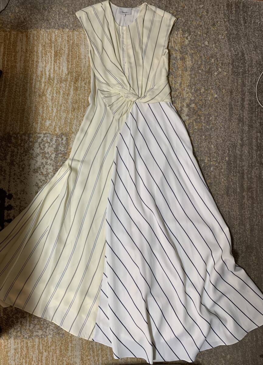 新品同様 17万 3、1 フィリップリム ワンピースドレス ストライプ 白 ベージュ系