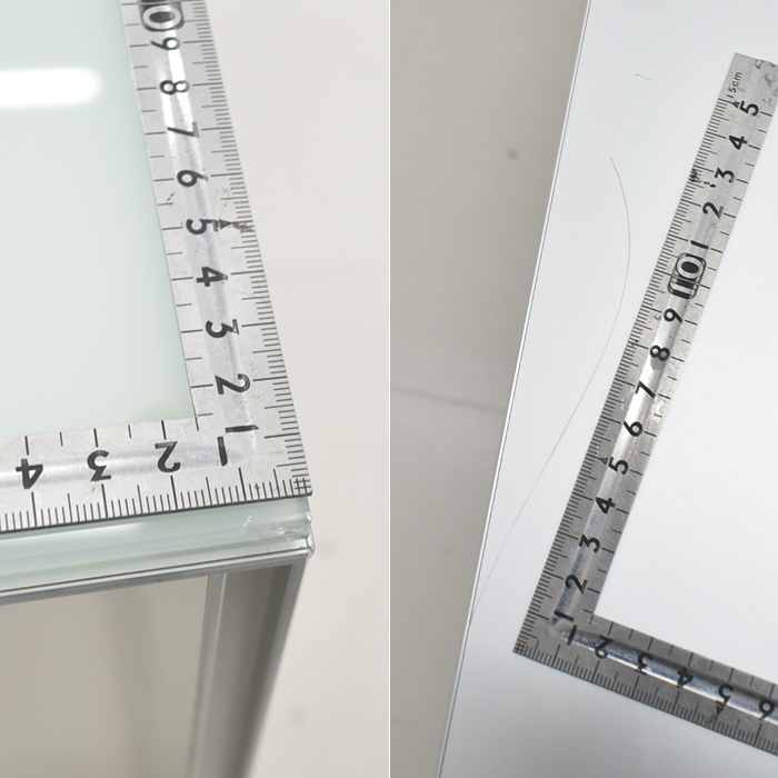 ※ガラス天板の角部分四カ所に小さなカケなどダメージがあります。