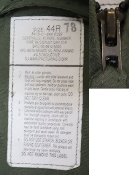 アメリカで買い付けの99年製の米軍ツナギのYKK製ZIPです。
