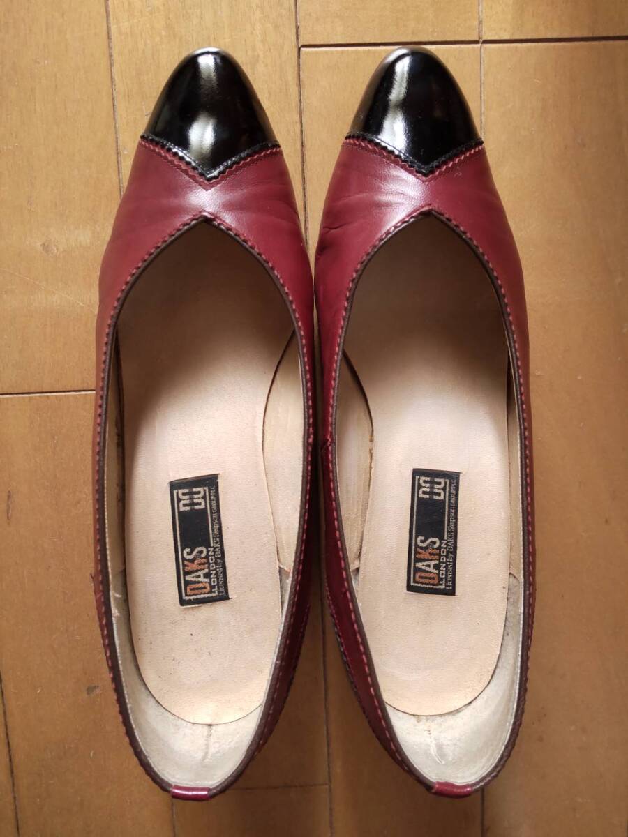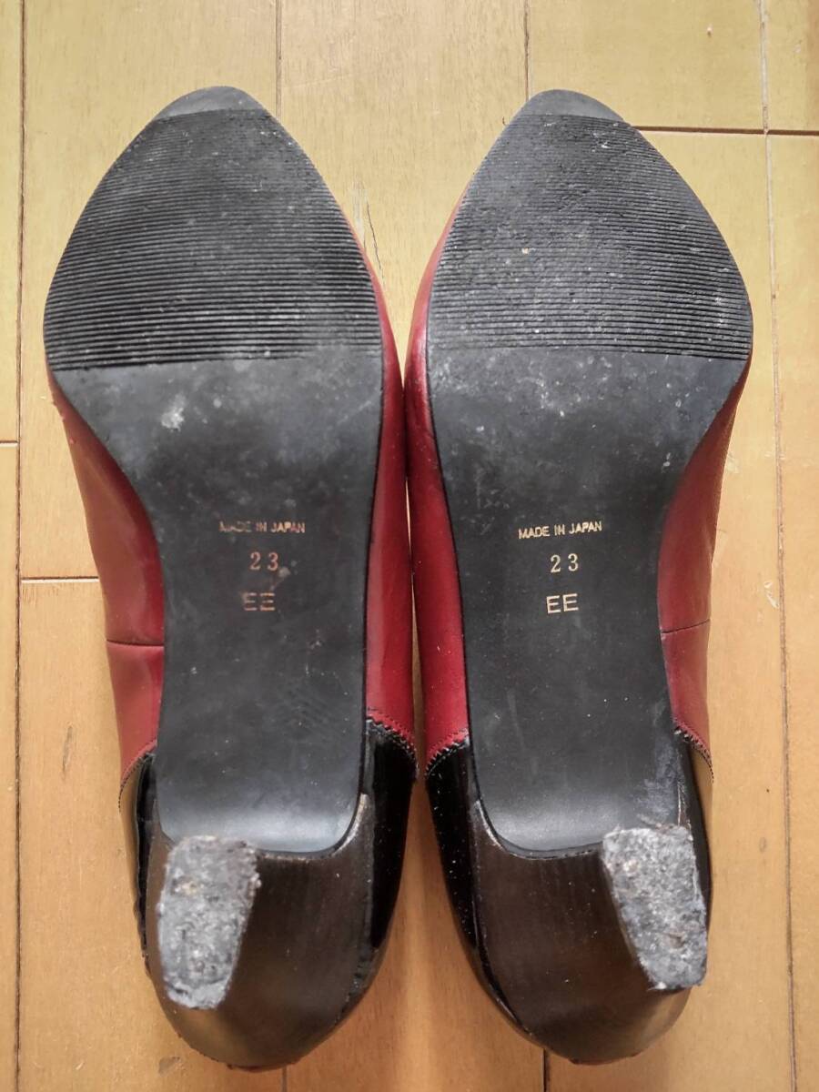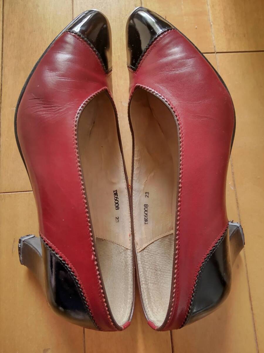 23 ㎝ EE 5㎝ヒール パンプス 黒×渋めの赤 日本製 ダックス DAKS LONDON