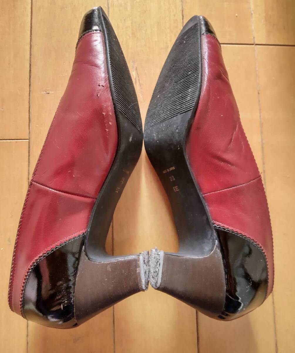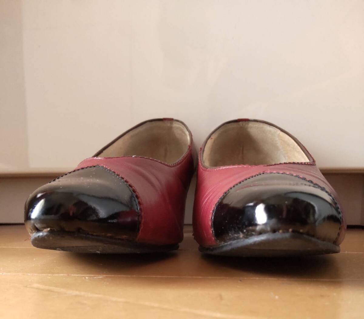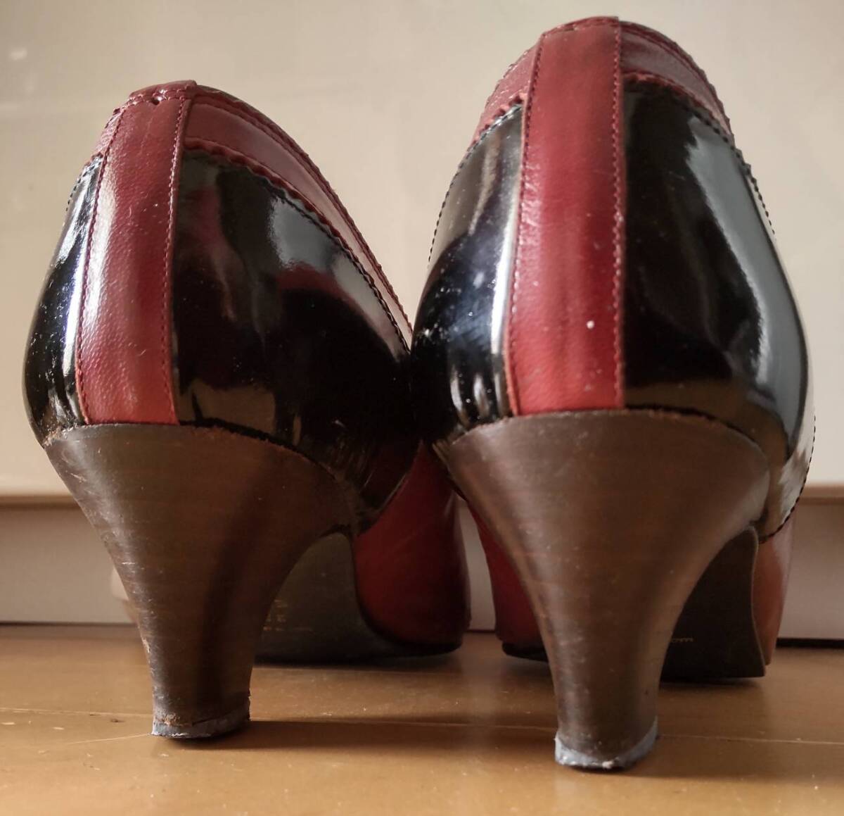 23 ㎝ EE 5㎝ヒール パンプス 黒×渋めの赤 日本製 ダックス DAKS LONDON