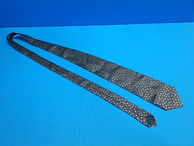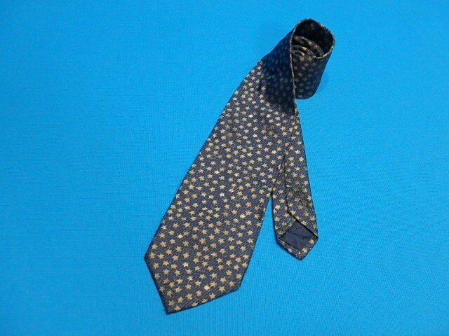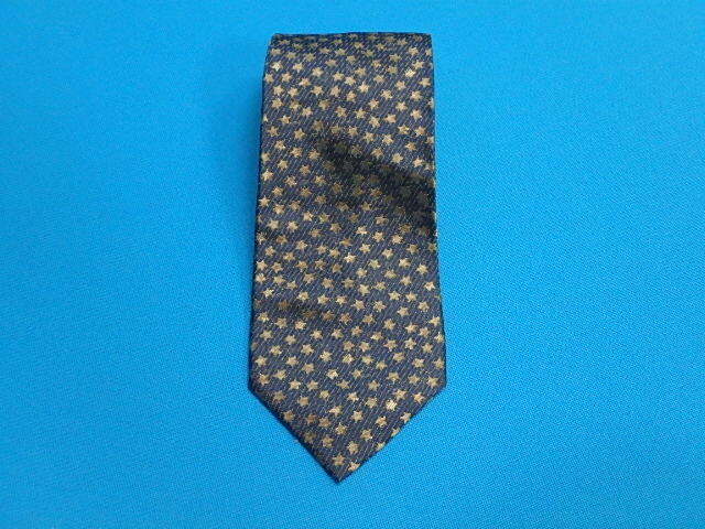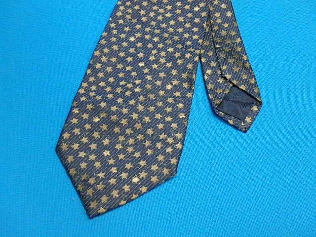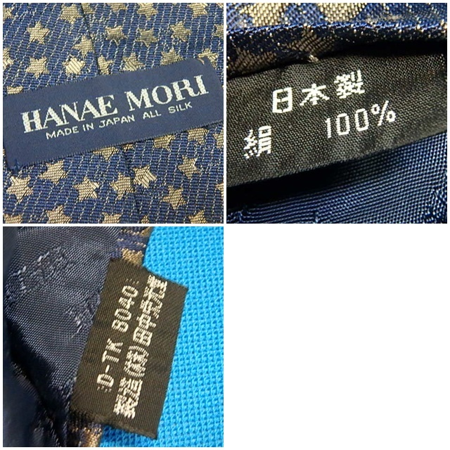 n407k ネクタイ ハナエモリ 森 英恵 紺色 星 スター柄 絹100% 日本製 ㈱田中栄光堂 中古 (0612-1)