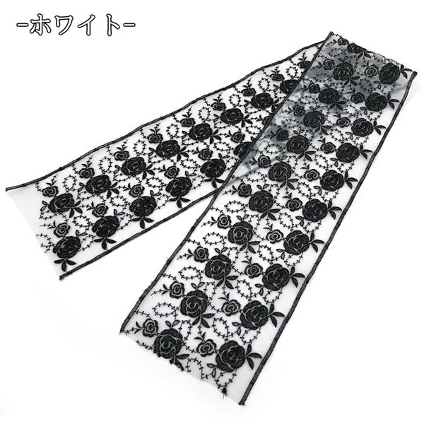 エレガントなローズのお柄が刺繍されたレース半衿です。