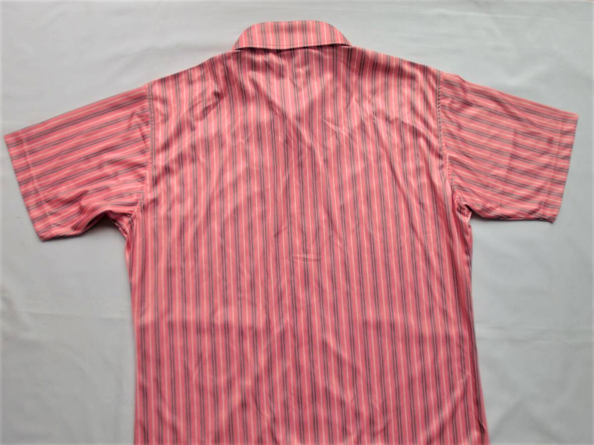 ◎淡いピンクにグレー・ホワイトのライン、プレーにも普段着にも使いまわしのきく一枚です。薄手でドライ感のある素材