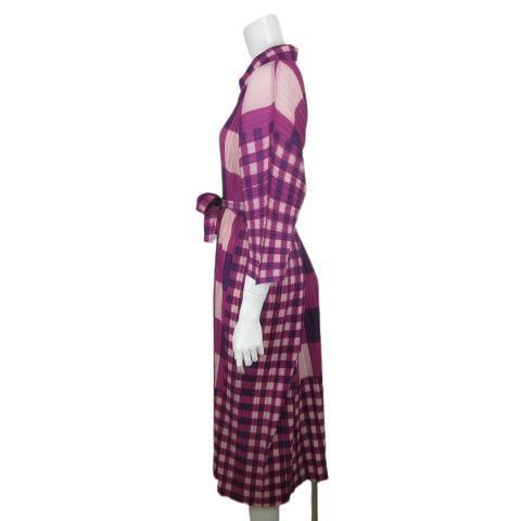 ◎光沢のある上品なプリーツにギンガムチェックがお洒落なワンピースです。