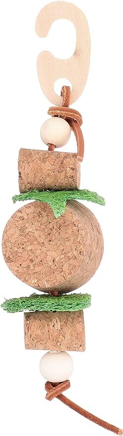 ●生き物がかじったり、ひっぱたり、崩して楽しいコルク素材に、ヘチマの葉っぱと木のビーズがアクセントについています。