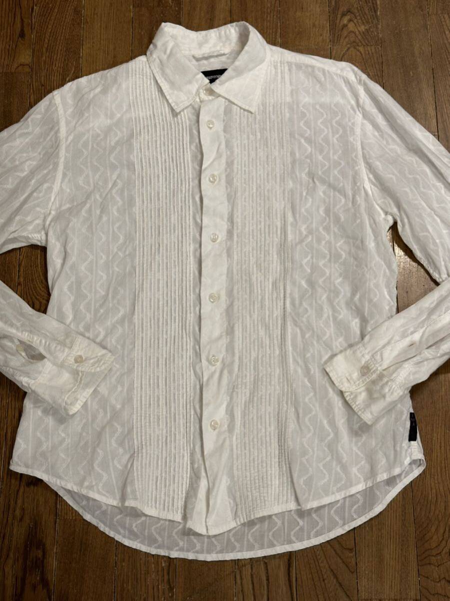 名作 本物 美品 EMPORIO ARMANI エンポリオアルマーニ デザインシャツ カジュアルシャツ ドレスシャツ 長袖シャツ 白シャツ M