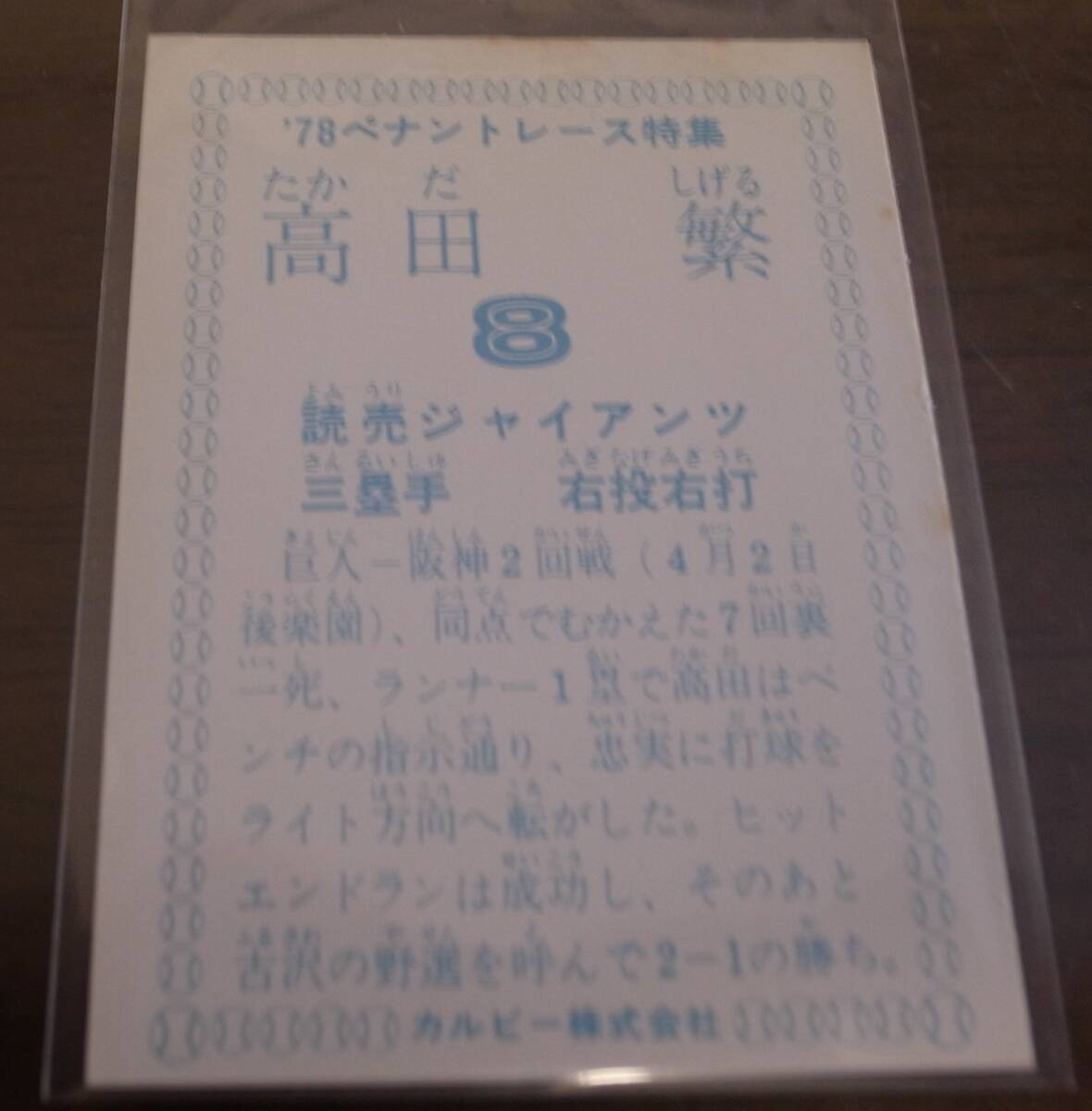 ■カルビープロ野球カード1978年/78ペナントレース特集/高田繁/巨人/ | ||