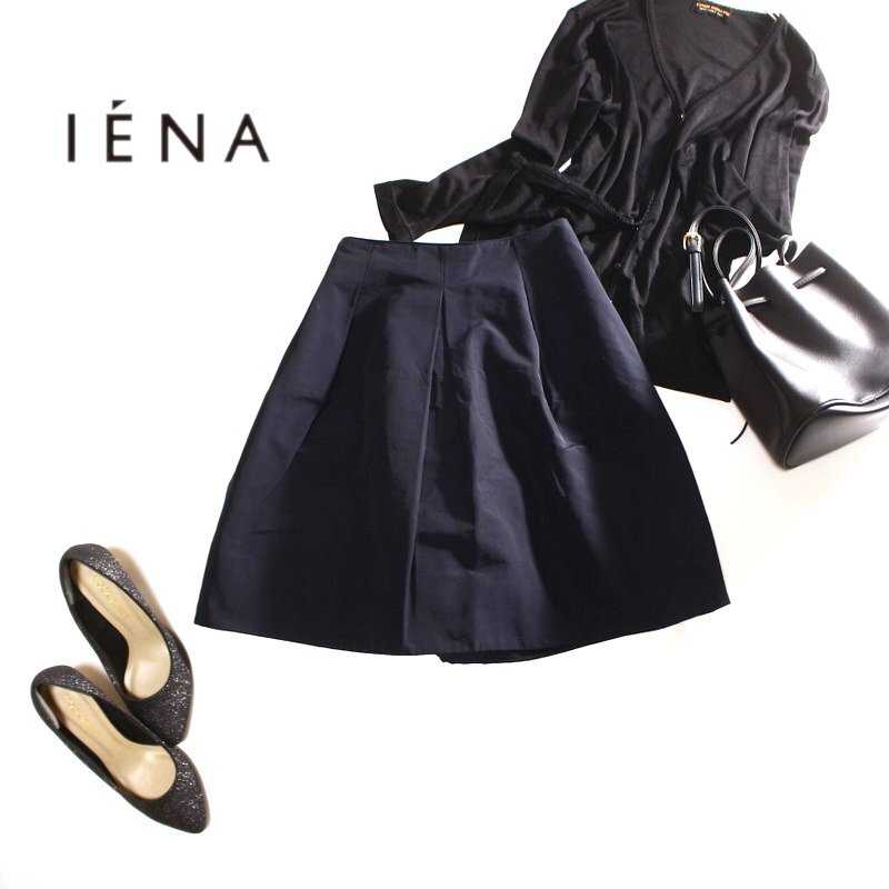 美品 イエナ IENA オールシーズン 艶 ナイロン系 Aライン シンプル フレアスカート スカート 7号 36 ネイビー 紺