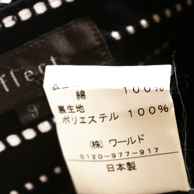 リフレクト Reflect 株) ワールド 刺繍 ボーダー 柄 Aライン フレアスカート 9号 2 ブラック 黒 ホワイト 白 膝下丈 綺麗め