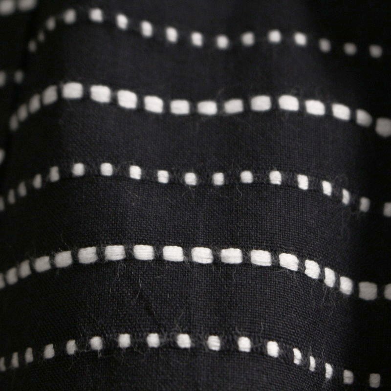 しっかりとしたポリエステル生地、刺繍ボーダー柄、ファスナーは左側、綺麗めデザインです。
