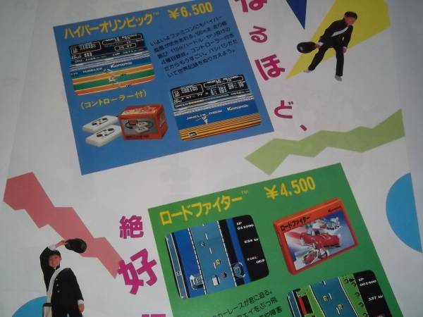 匿名送料無料 ★☆ファミコンちらし 非売品 カタログ KONAMI コナミ ★ハイパーオリンピック ★ロードファイター 1985 ☆☆即決!