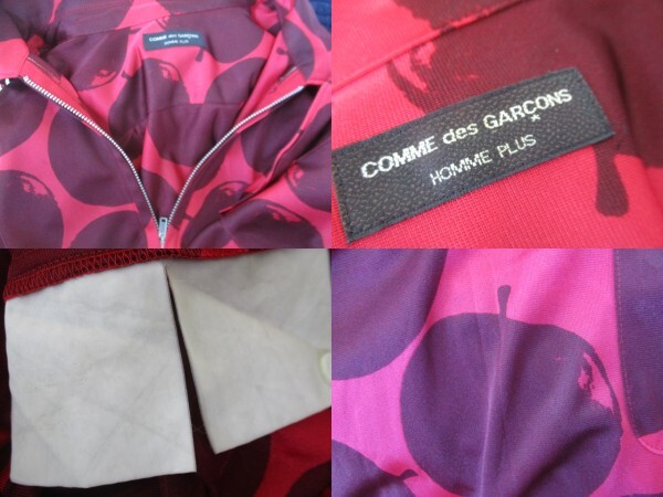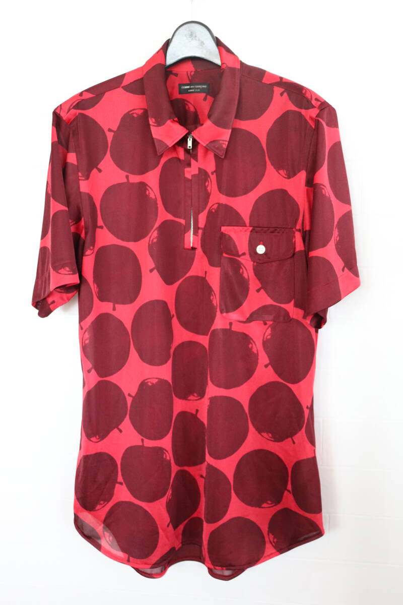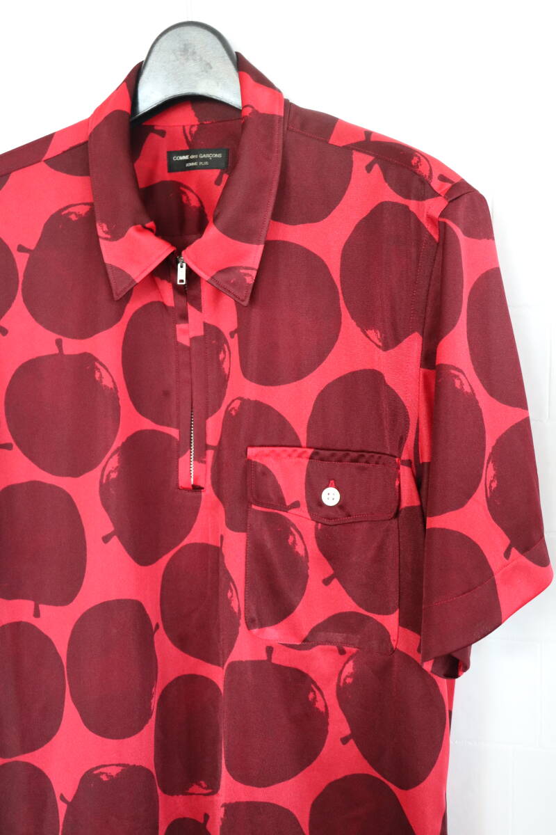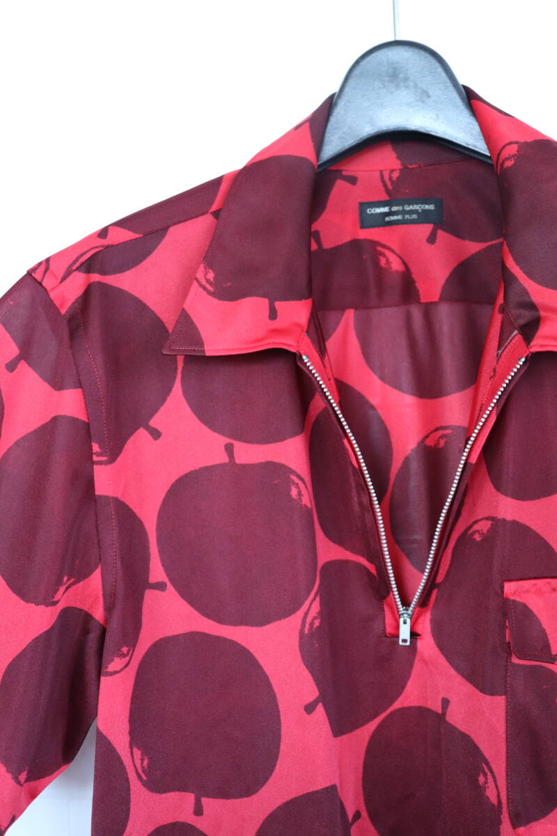 即決 01SS COMME des GARCONS HOMME PLUS コムデギャルソンオムプリュス リンゴ アップル りんご総柄 ハーフジップ サテンTシャツ シャツ
