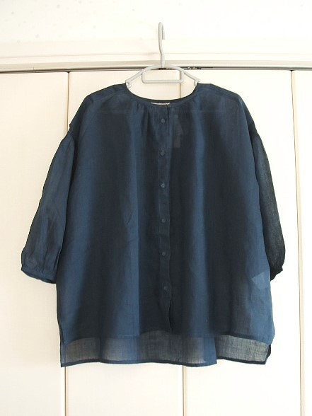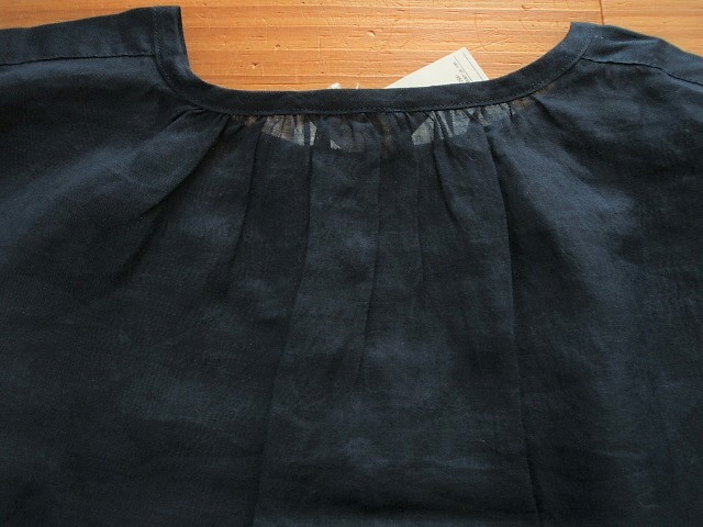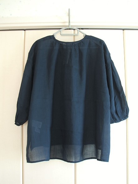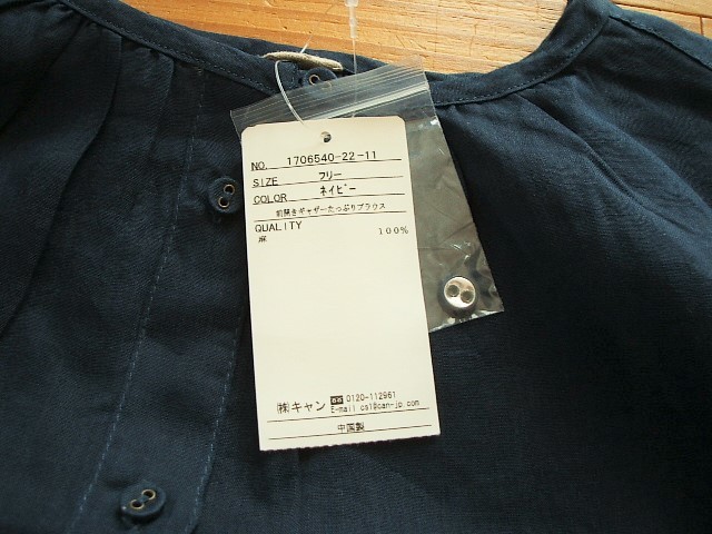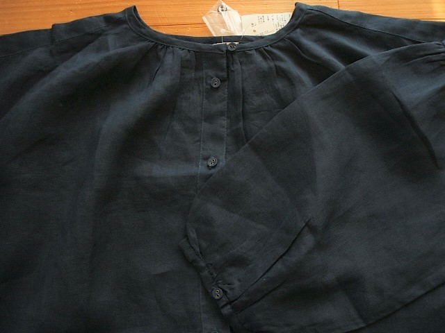 サマンサモスモス★リネン100%・前開きギャザーたっぷりブラウス・ネイビー★タグ付き