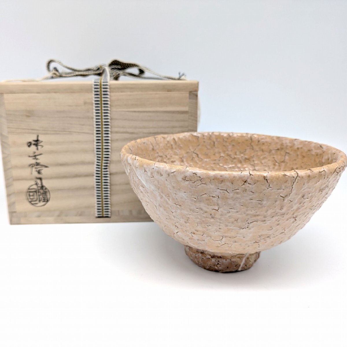 直径:約140㎜、高さ:約80㎜、状態ランク:B 商品は画像に写っているものが全てです。抹茶碗本体に目立つキズやヨゴレはありません。共箱には多少の傷みが見受けられます。その他状態は画像をご確認ください。