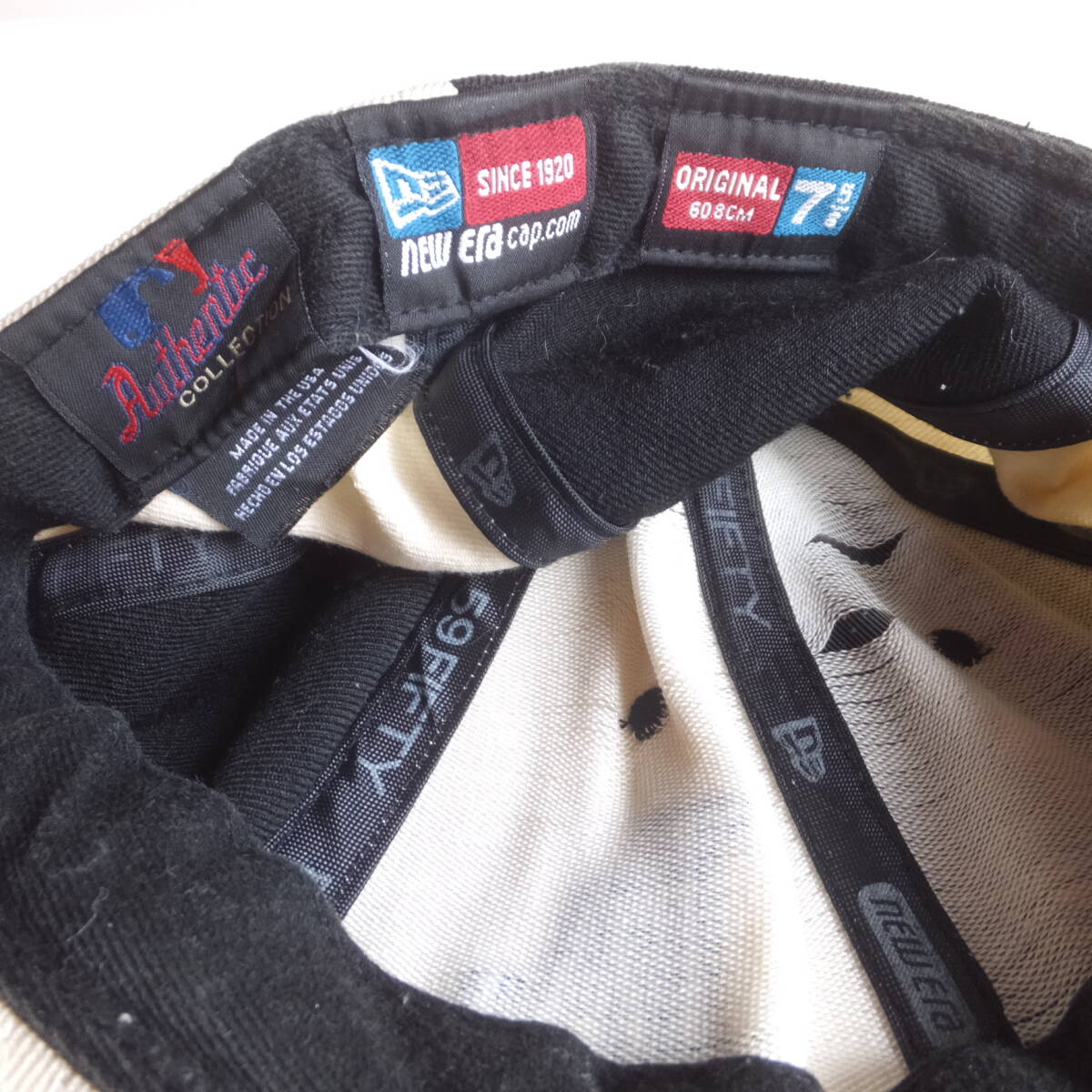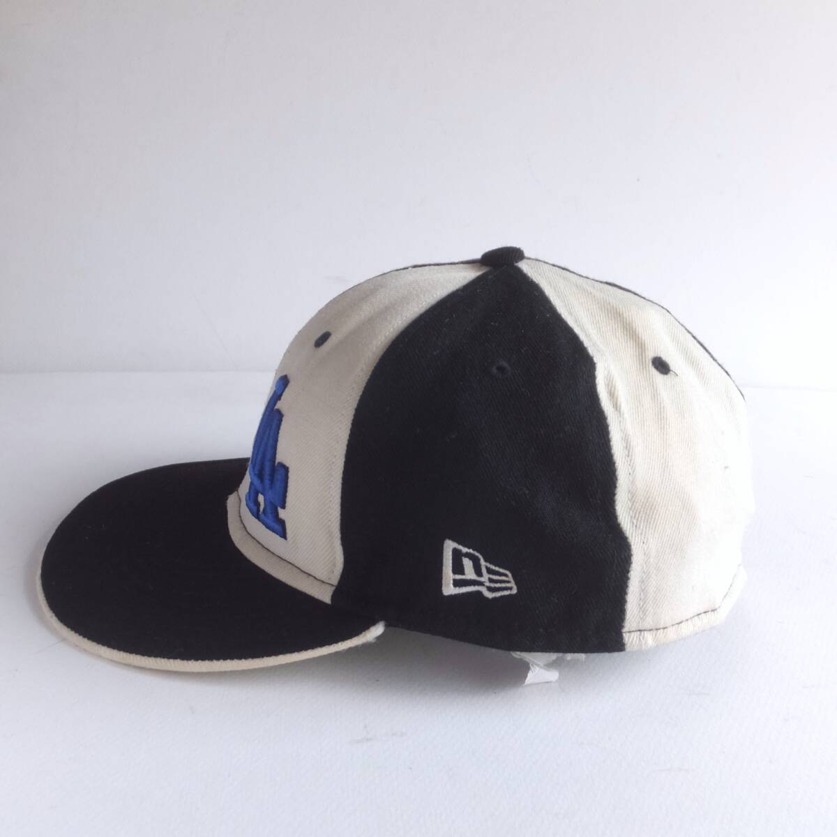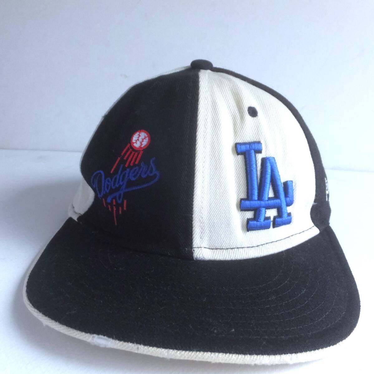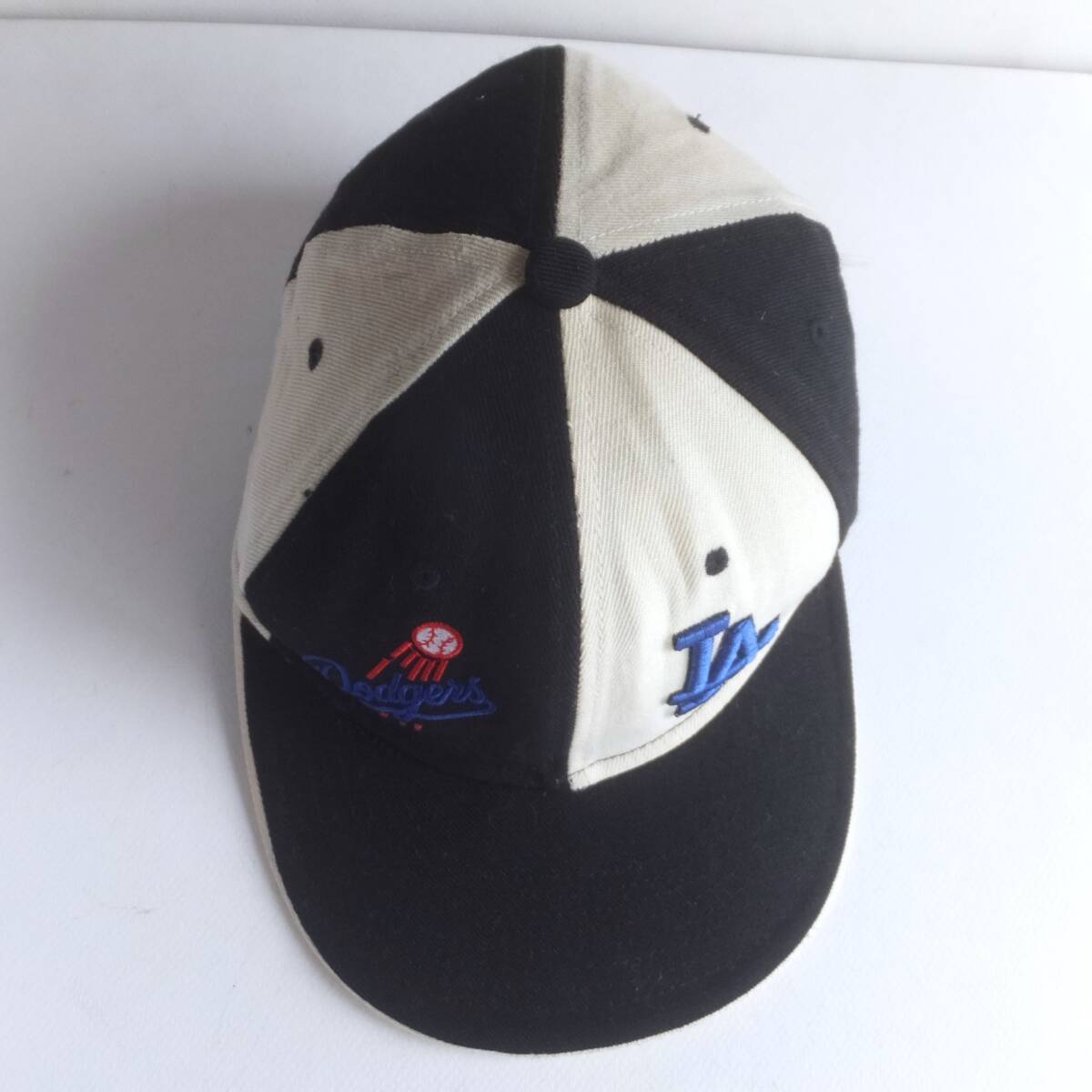 LA ドジャース New Era ニューエラ ビンテージ MADE IN USA ウールキャップ 7-5/8 60.8cm wool100% 黒×白チェッカーフラック風 野球帽