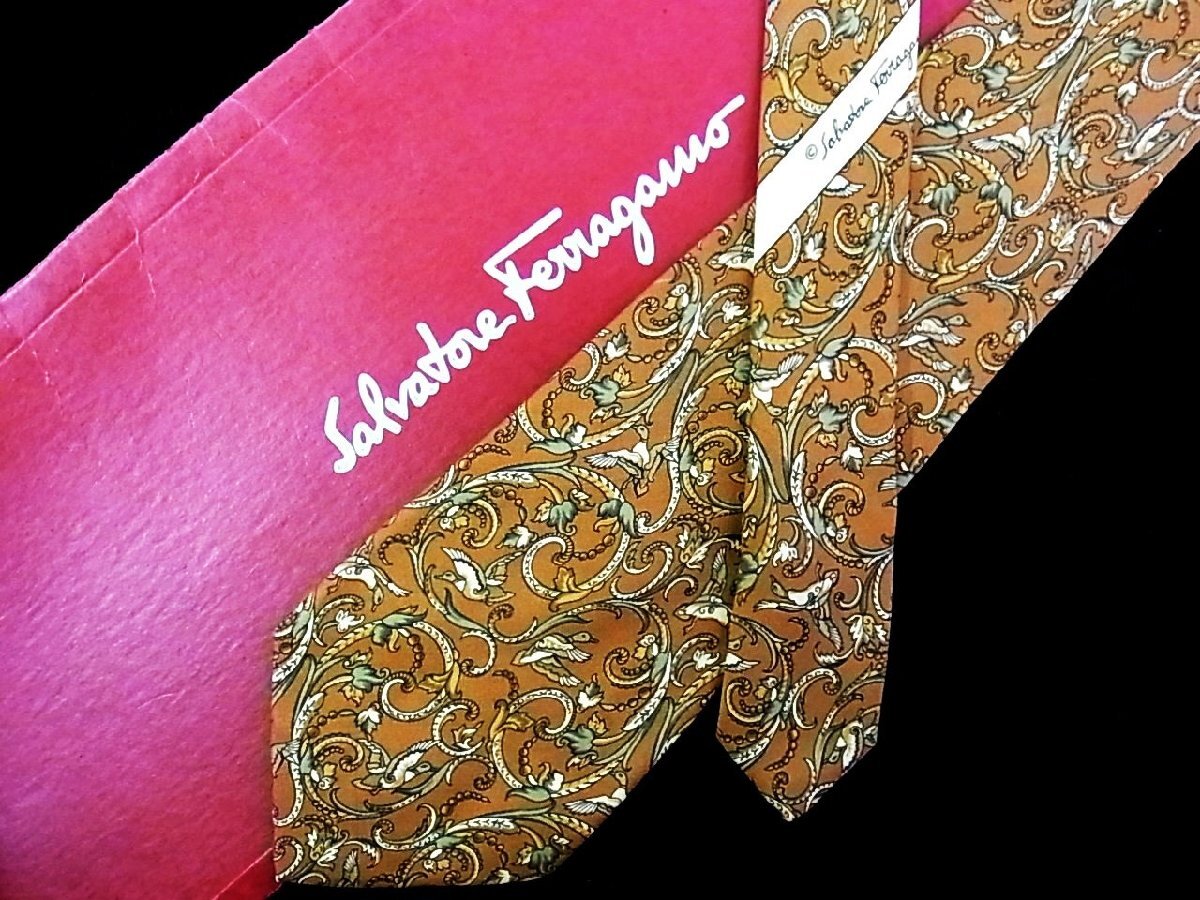 ♪今週の特売980円~♪3022♪良品【Ferragamo】フェラガモ【鳥 鴨 カモ 植物 柄】ネクタイ♪