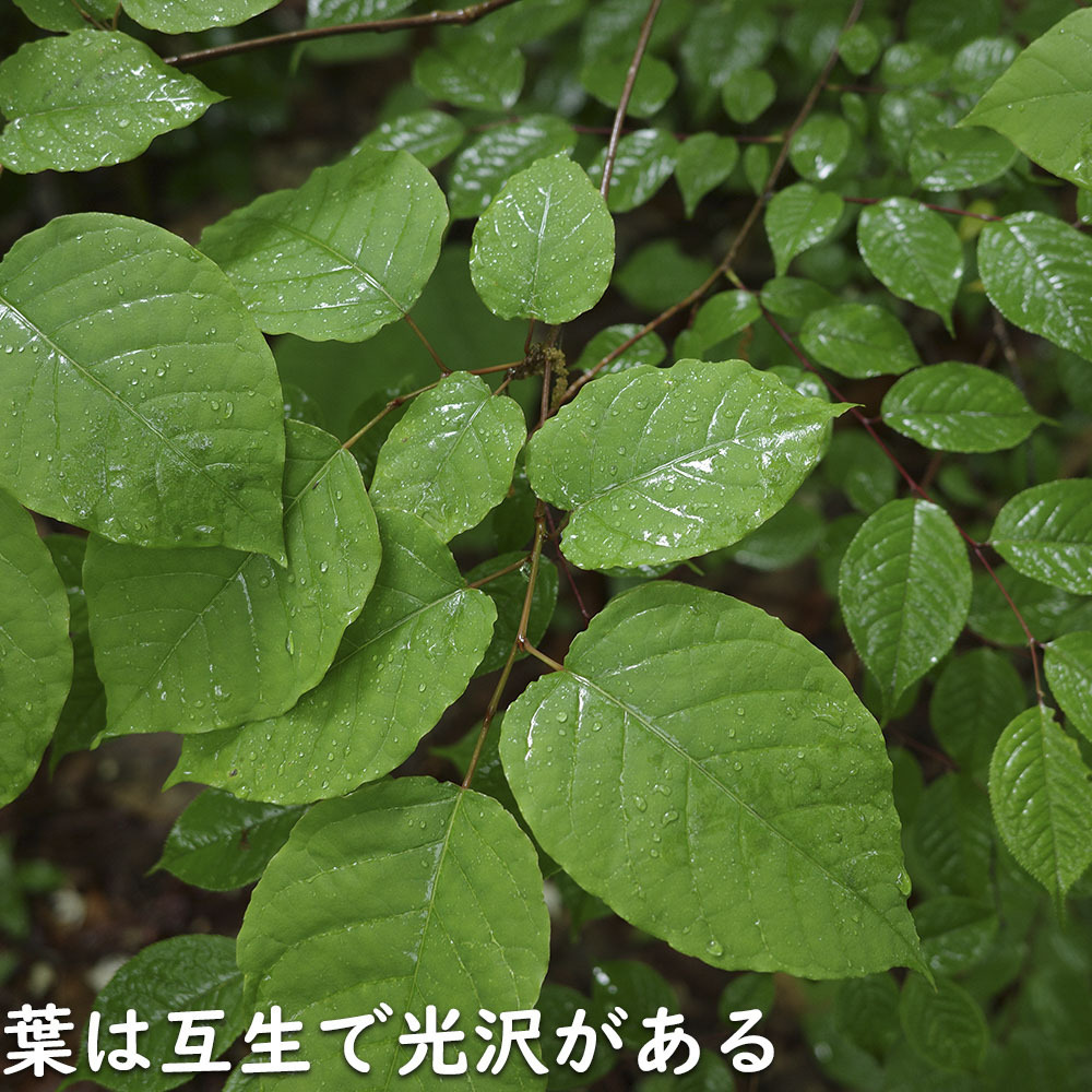 シラキは雑木として人気があります。自然樹形で形が定まらい独特の雰囲気があります。幹はすべすべした白乳色です。葉は緑色です。5~7月頃に目立たない緑色系の花が咲きます。紅葉が美しく赤色に紅葉します。ナンキンハゼと同じ仲間です。実は小さな実で3つの種子ができます。油分が多い樹種として知られています。