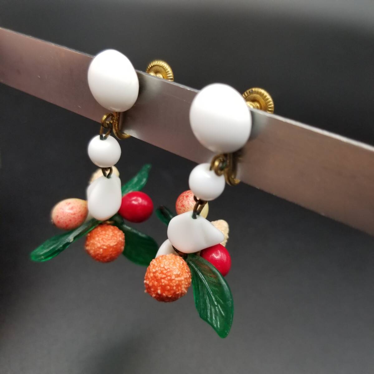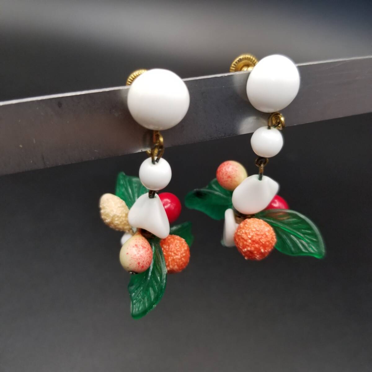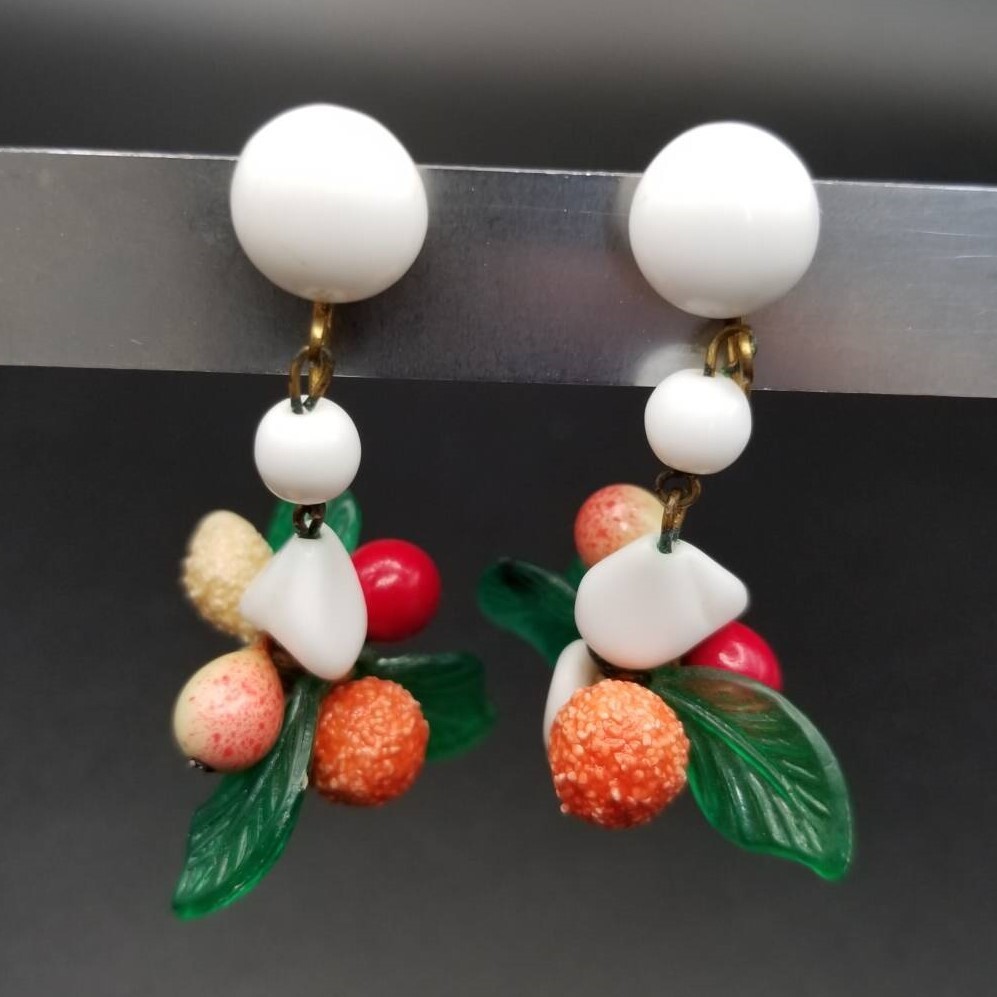 西ドイツ ヴィンテージ 果物 植物モチーフ イヤリング 華やか 大ぶりチャーム フローラル 自然派 Western Germany Y18-N