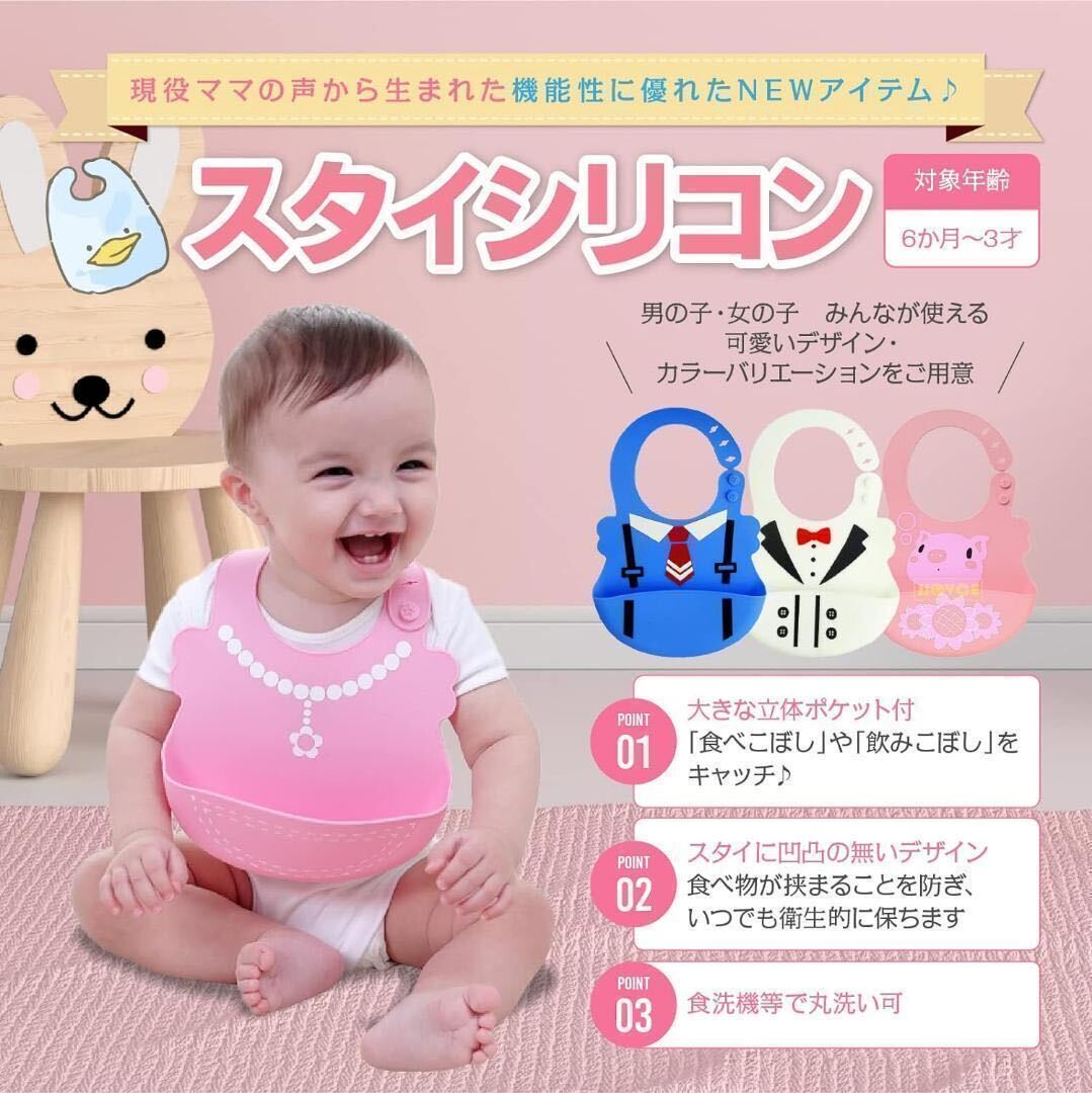 お食事エプロン シリコンビブ ベビー エプロン 人気 シリコン 食事用スタイ 防水 食洗機で洗える 油が落ちる(ピンク) ベビービョルン カトージ コンビ