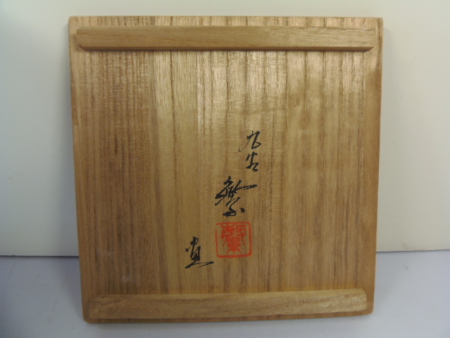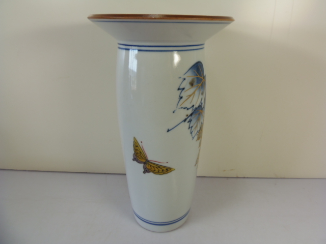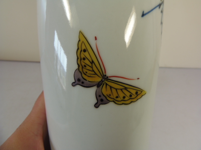 ●k272 【九谷焼 藤原繁雄】 花瓶 染付 葡萄と蝶文様 【同梱不可】