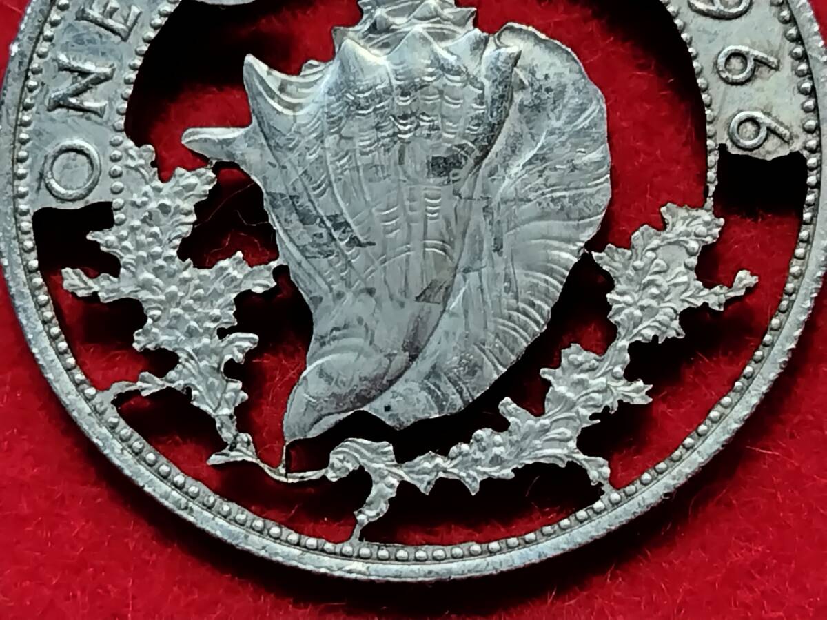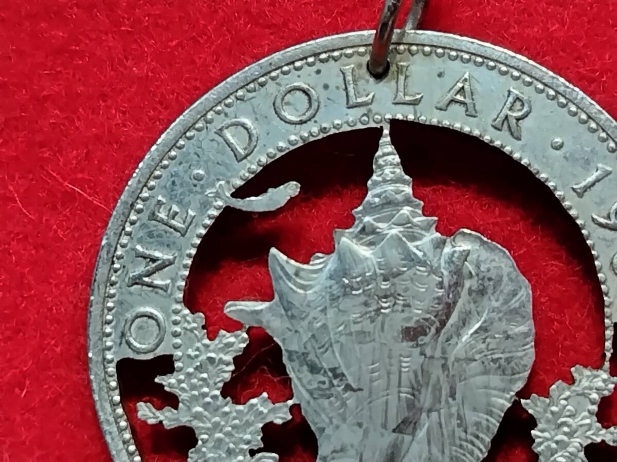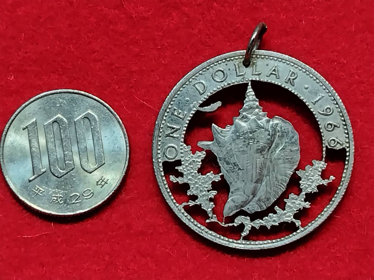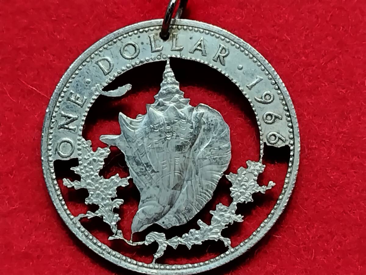 バハマ諸島1ドルを切り抜きペンダントにしました、写真を良くご覧の上入札お願いします。