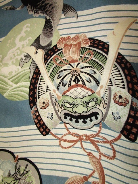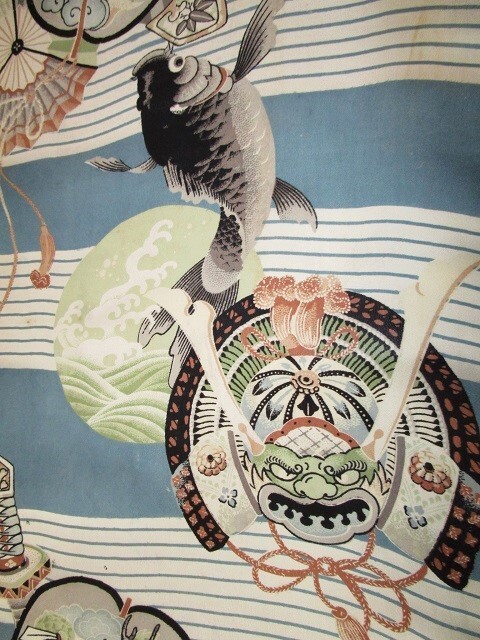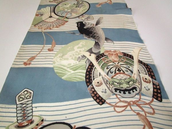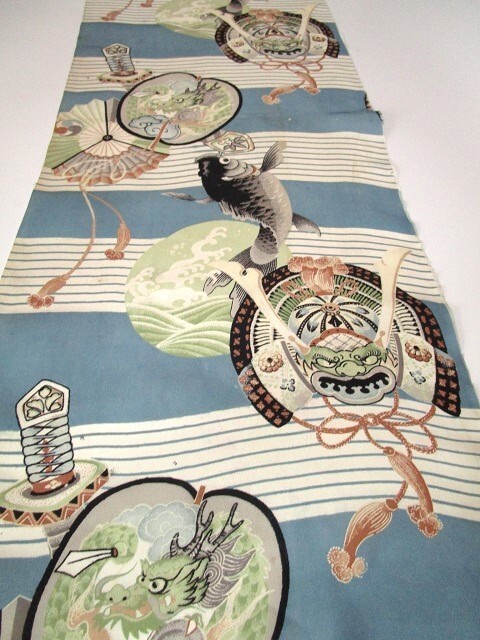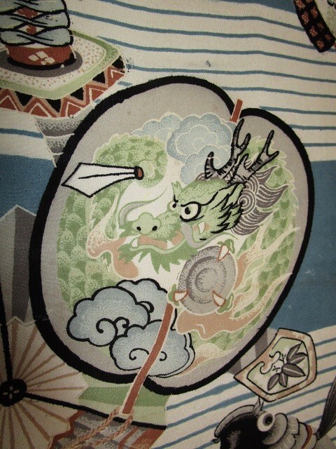 男5-102★獅子兜*龍*鯉*刀*扇*行司*人絹*古布はぎれ★一閑張り/襖絵/屏風絵/アンティーク