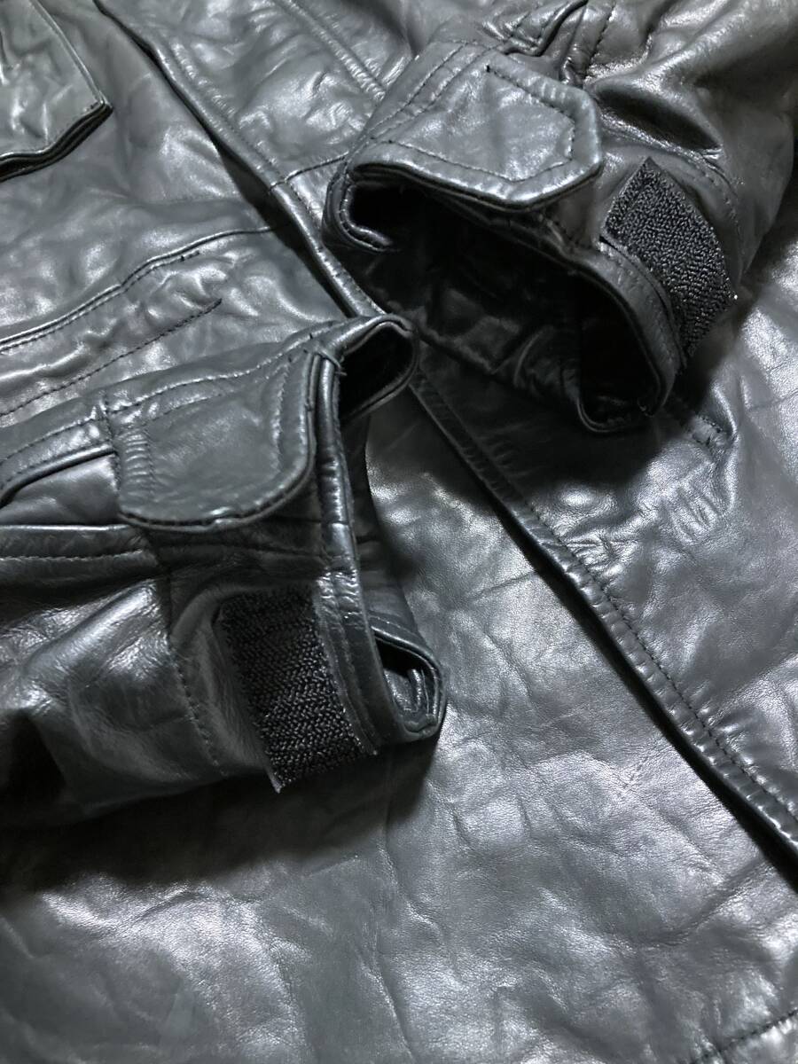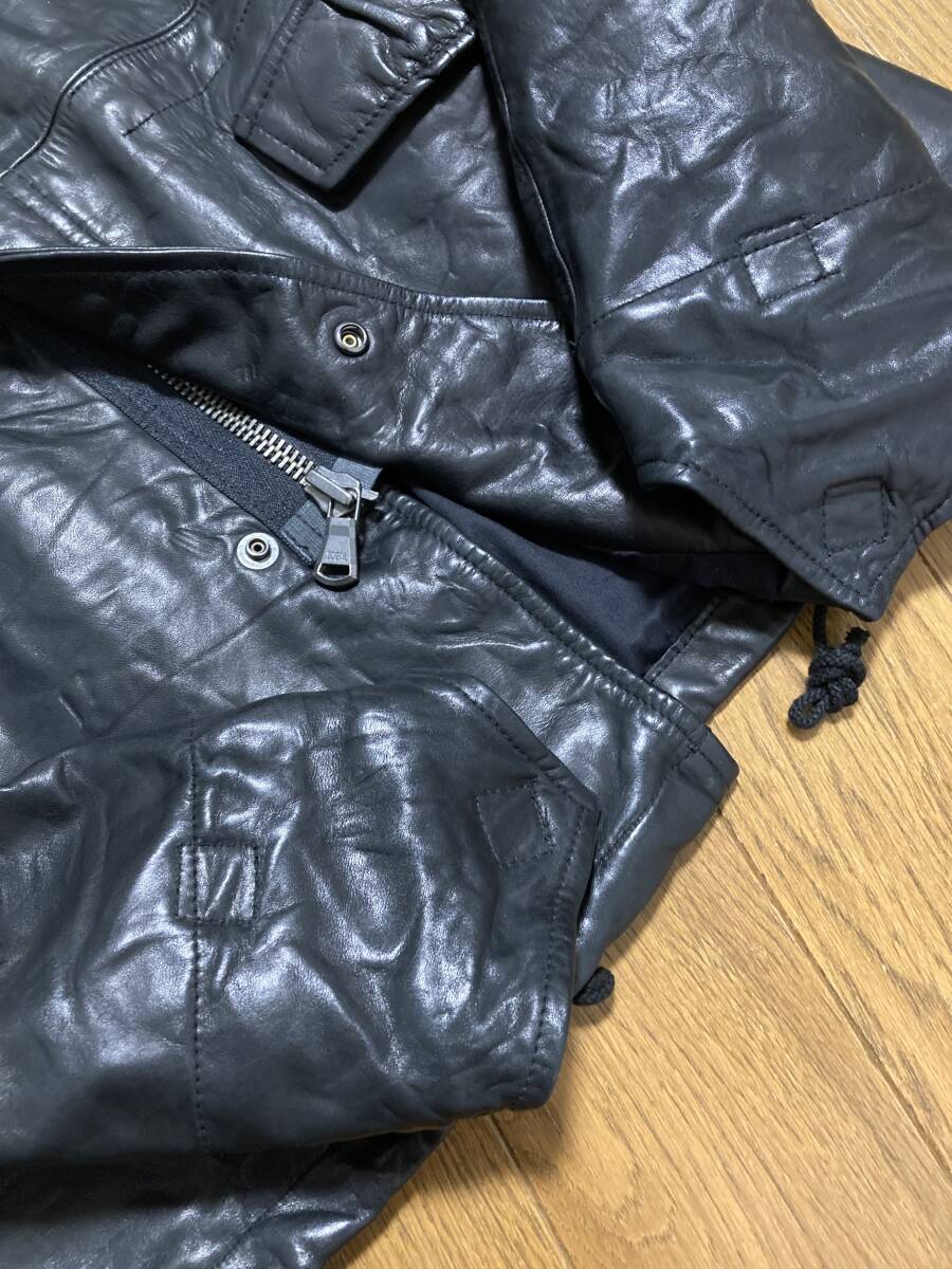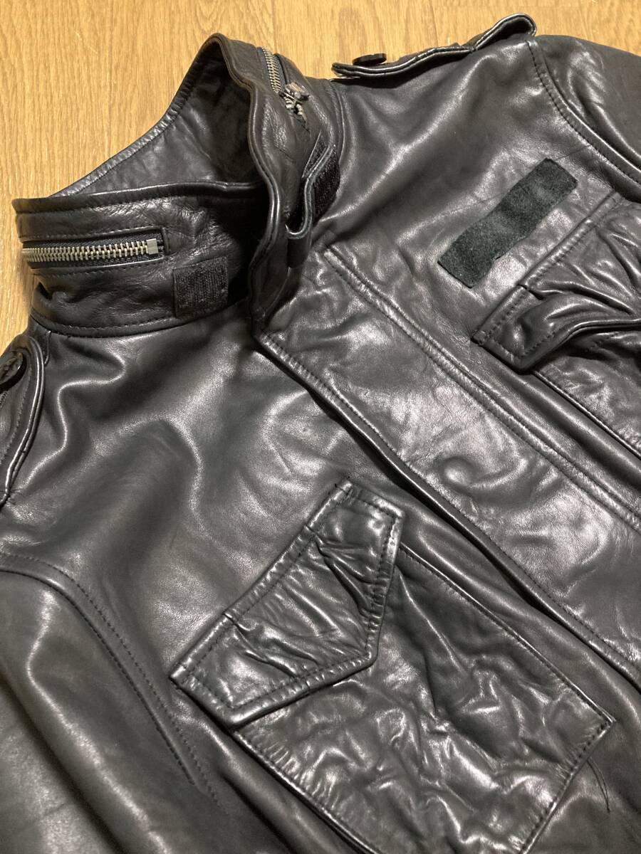美品☆XL [AZ by junhashimoto] 定価52,500 M66 ウォッシャブル ミリタリーレザージャケット XL 牛革 ブラック エーゼイ ジュンハシモト
