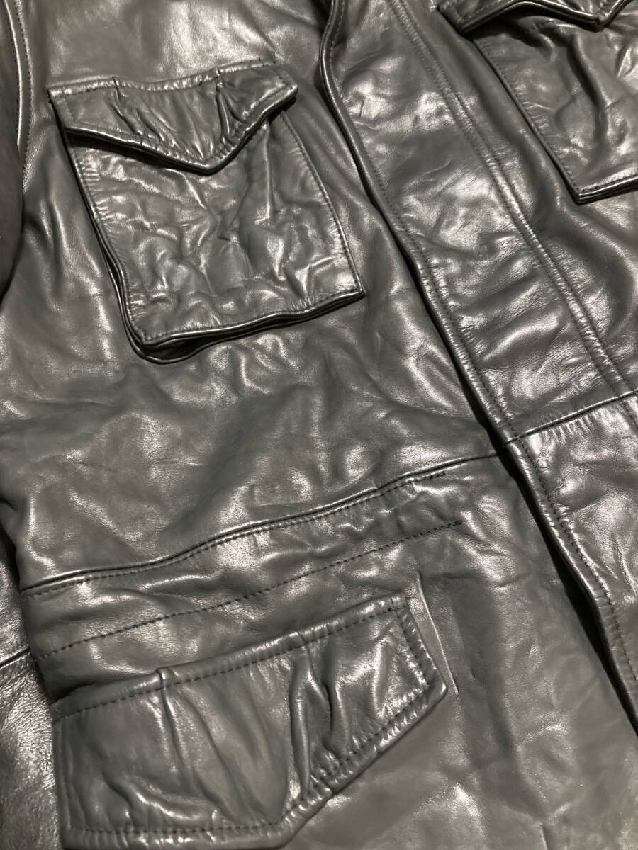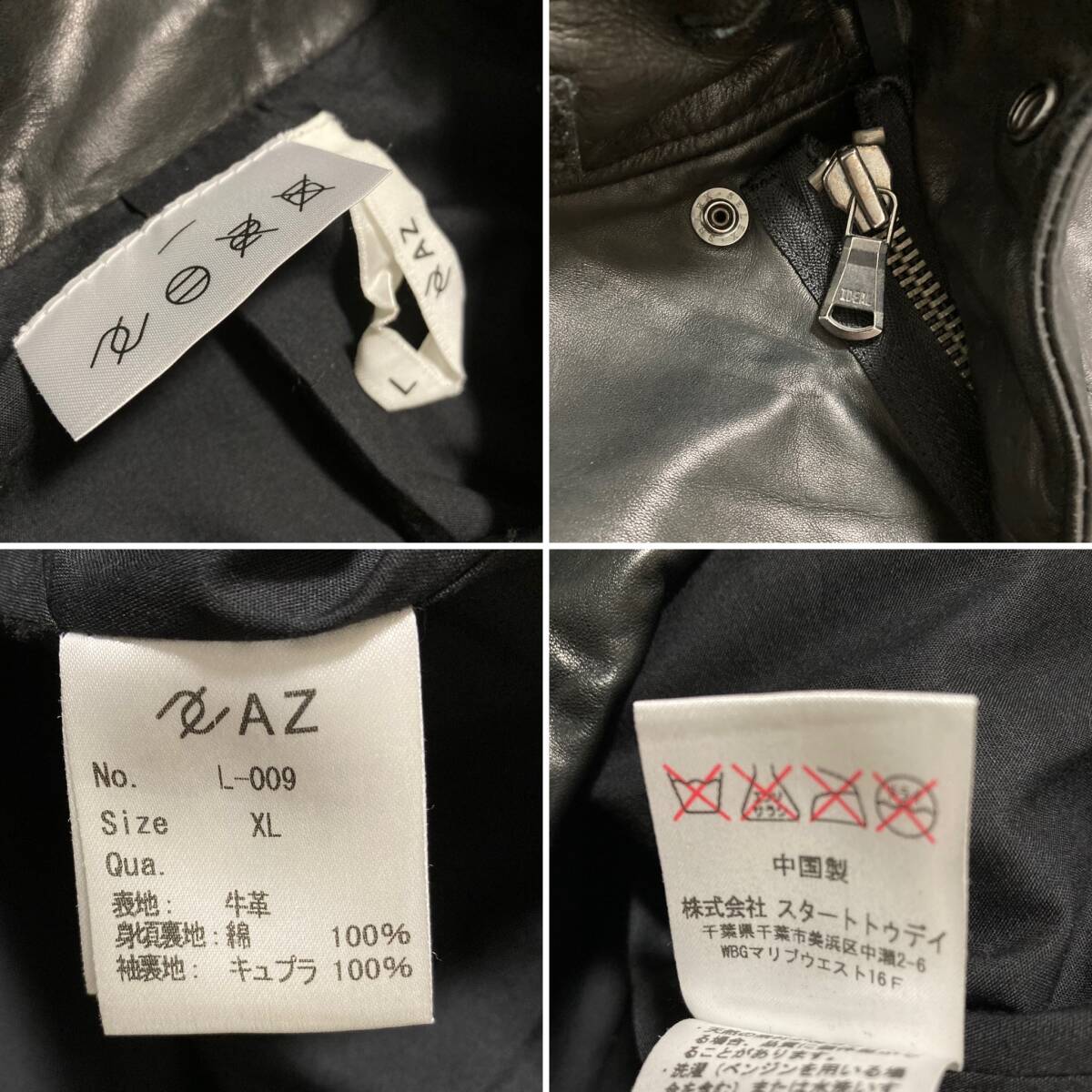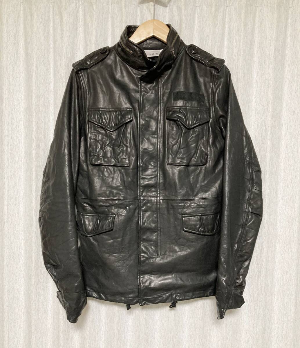 美品☆XL [AZ by junhashimoto] 定価52,500 M66 ウォッシャブル ミリタリーレザージャケット XL 牛革 ブラック エーゼイ ジュンハシモト