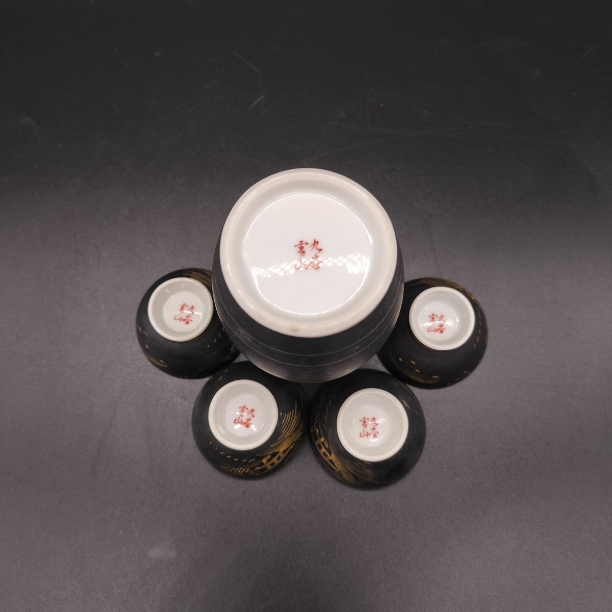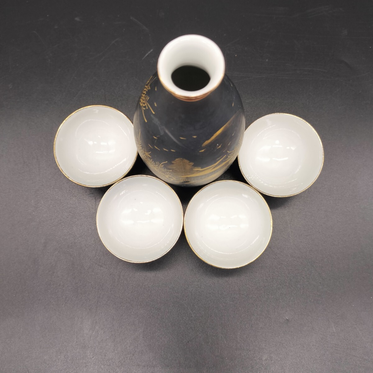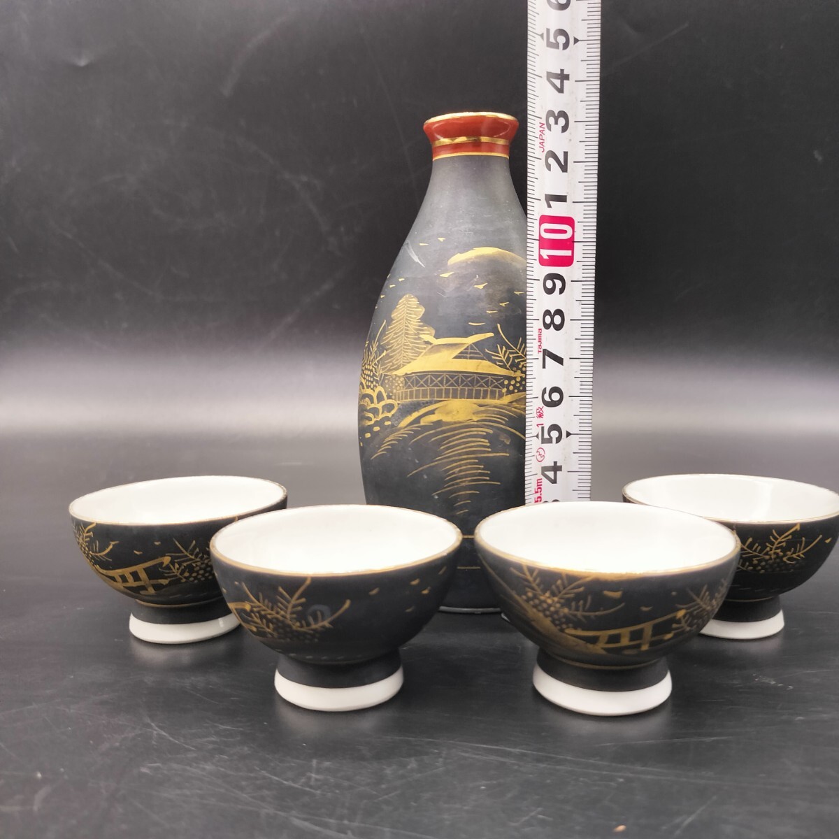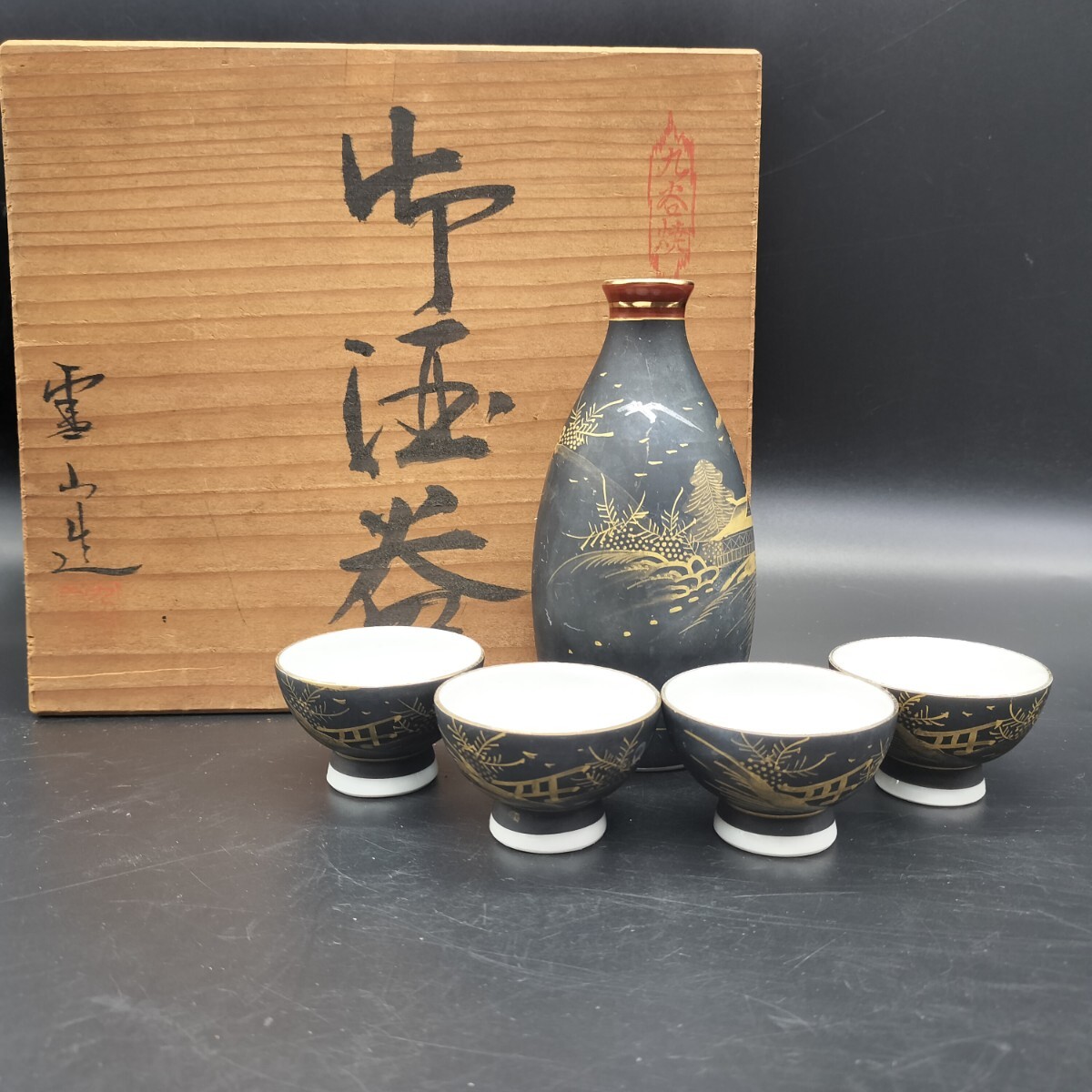 九谷焼 雪山 金彩 黒地 徳利 お猪口 酒器 酒器揃 ぐい呑 ク6