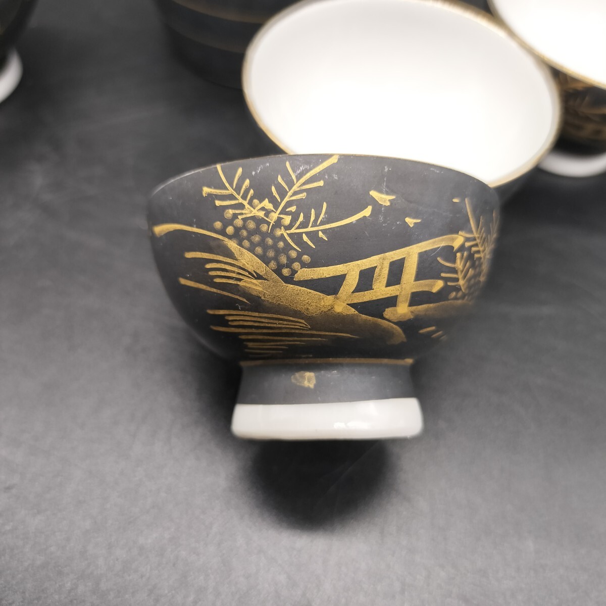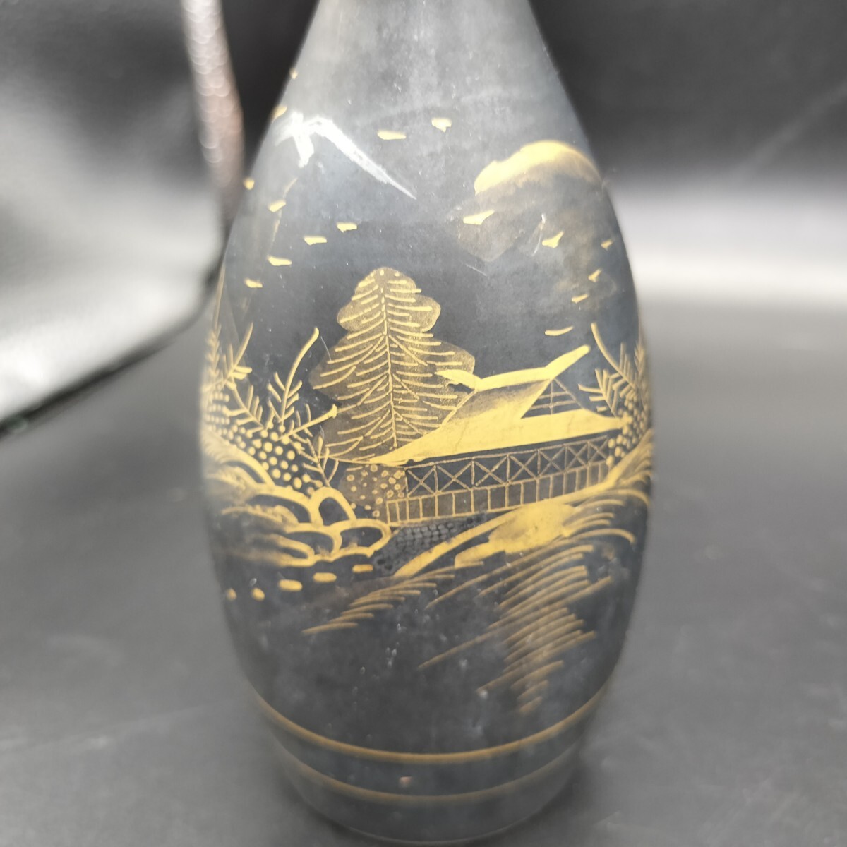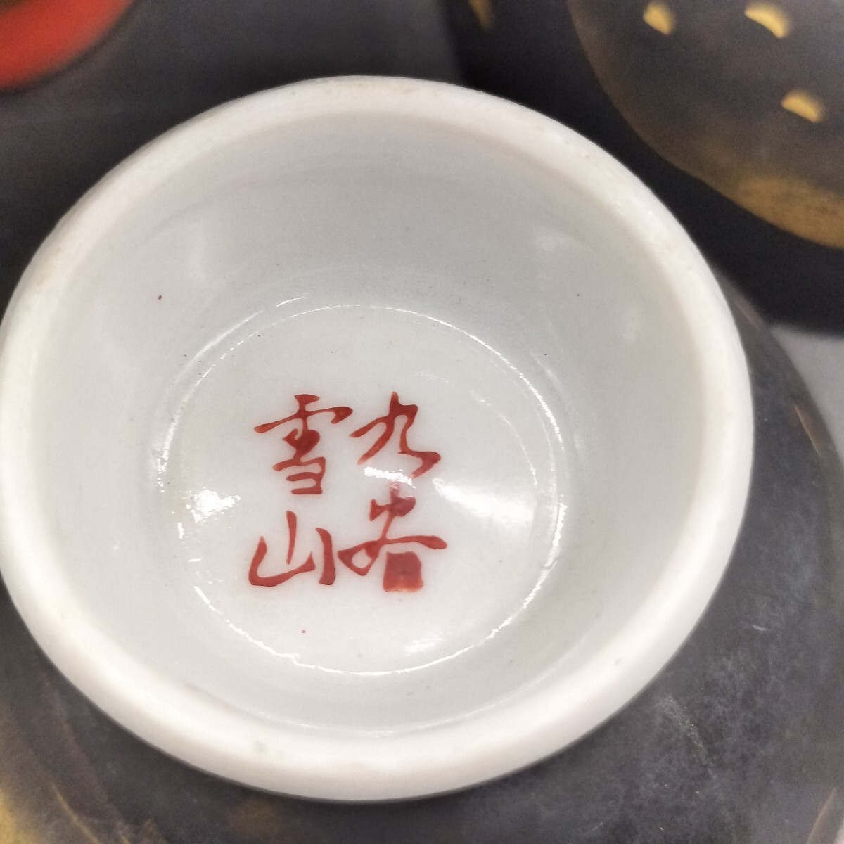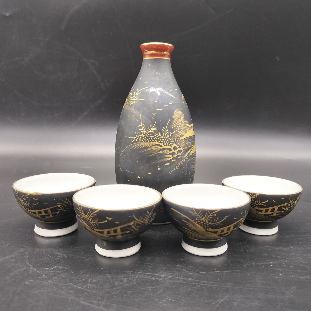 九谷焼 雪山 金彩 黒地 徳利 お猪口 酒器 酒器揃 ぐい呑 ク6