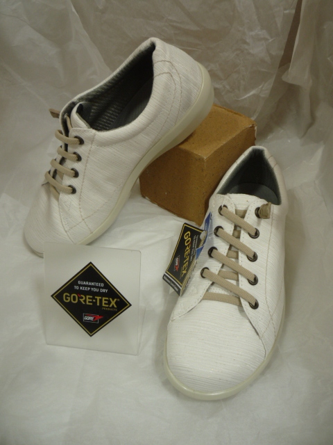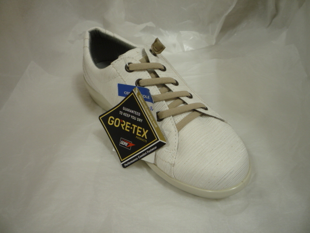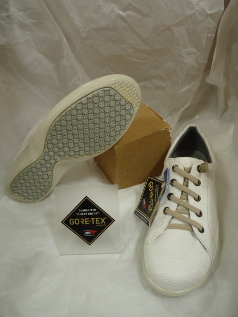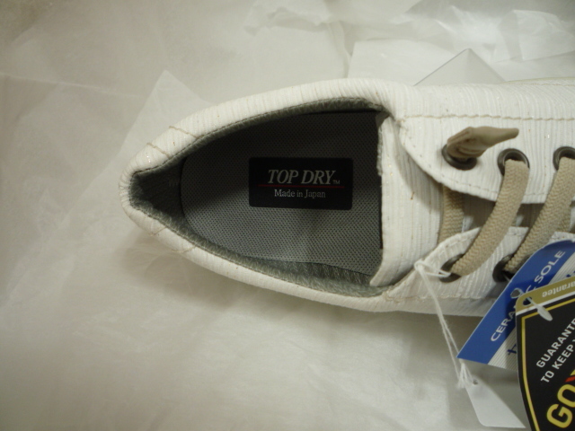| トップドライ ゴアテックス仕様ウォーキングシューズです もっとも優れた防水素材 GORE-TEX を使い、足元の悪い日でもでも快適に歩ける全天候対応モデル。 雨の日の不快な足元もこれで解消です。また靴の中の汗は外に放出される機能ですので、足が蒸れずに快適にご利用いただけます。これが他の素材には無い機能です。 デザインは幅広く活躍できる様シンプルに仕上がっていますので、様々な場面で使っていただけます。 底材には、グリップ力に優れた特殊ラバーに、セラミック粒子やガラス繊維など配合しています。 濡れた路面でも滑りにくく安心して快適な歩行を楽しむことができます。 ご旅行等などにも大変お勧めです!! 厳しすぎるほどの品質基準をもとに、すべてのTOP DRYは安心の日本製です。 店頭でも、評判を頂いて、常にNO1の素材でございます。 「雨の日も晴れやかに、オシャレに歩く」トップドライをこの機会にぜひ! ー詳細ー ◇価格(税込み):19250円 ◇サイズ24.0cm ◇カラー:ホワイト ◇表素材:合成繊維 ◇内装材:通気性のある抗菌素材(ゴアテックス内蔵、雨を通さず中の汗は外に放出されますので足が蒸れません、これは他の防水素材には無い機能です) ◇底材:puダイレクト(底はがれしぬくい製法)/セラミックラバー(濡れた路面・雪上でもグリップ力を発揮)