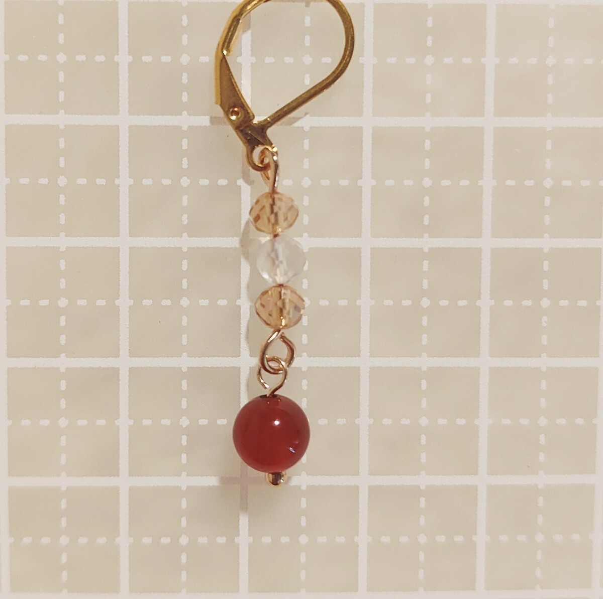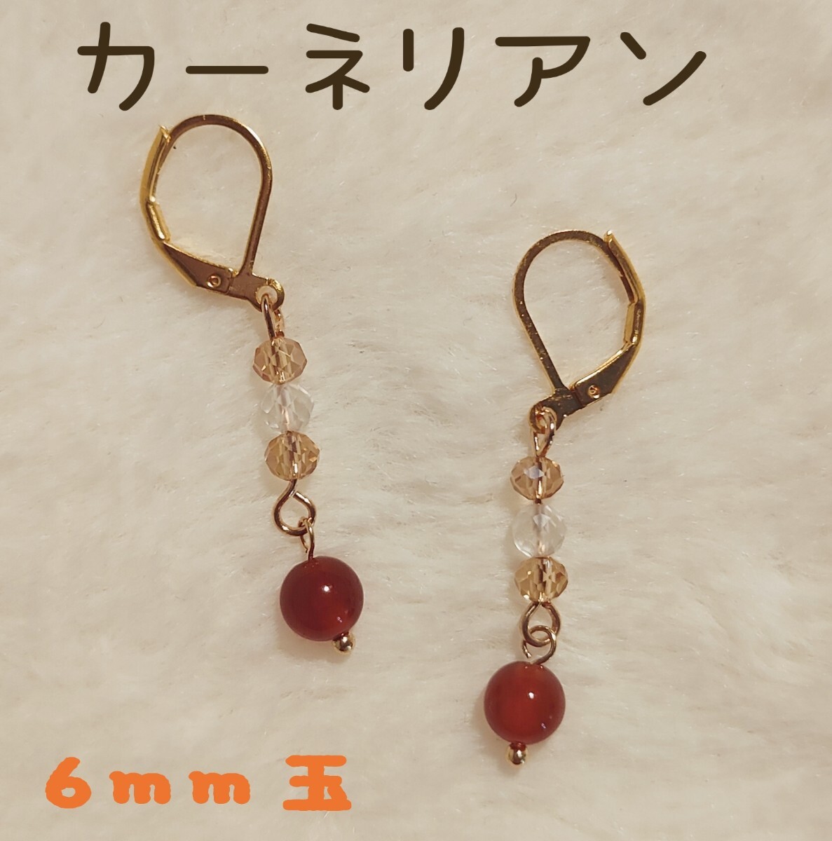 6mm玉のカーネリアン、4mm玉の水晶にガラスビーズを合わせたパワーストーンピアスorイヤリングです(=^・^=)