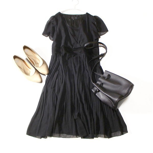 美品 UNTITLED アンタイトル 綺麗め プリーツ シフォン ワンピース 2号 M 春 夏 24D07