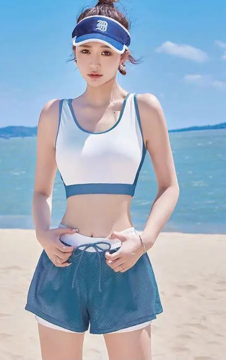 【XLサイズ blue 3点セット】女性用スリーピーススポーツ水着、ルーズカバーアップ、日焼け止め、学生、温泉、学生モデル、スプリット