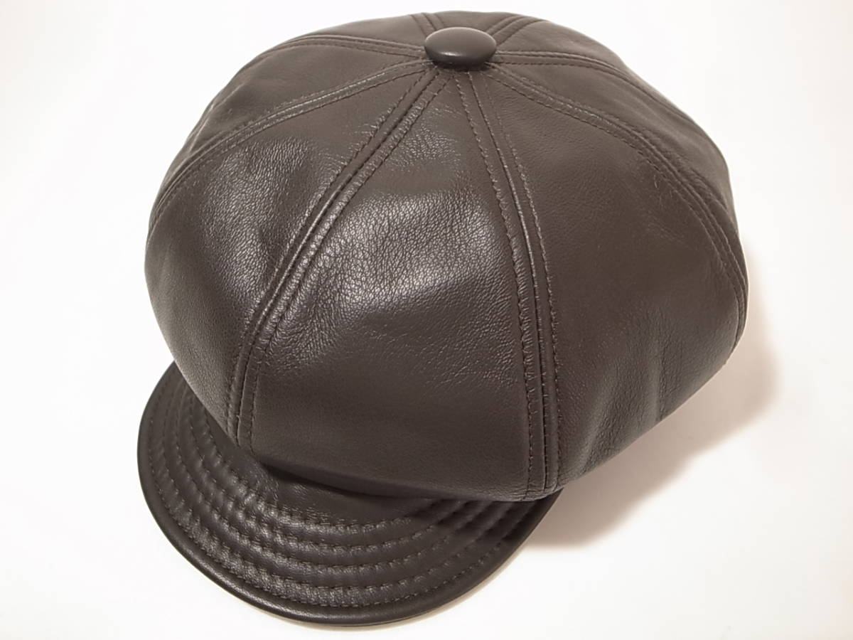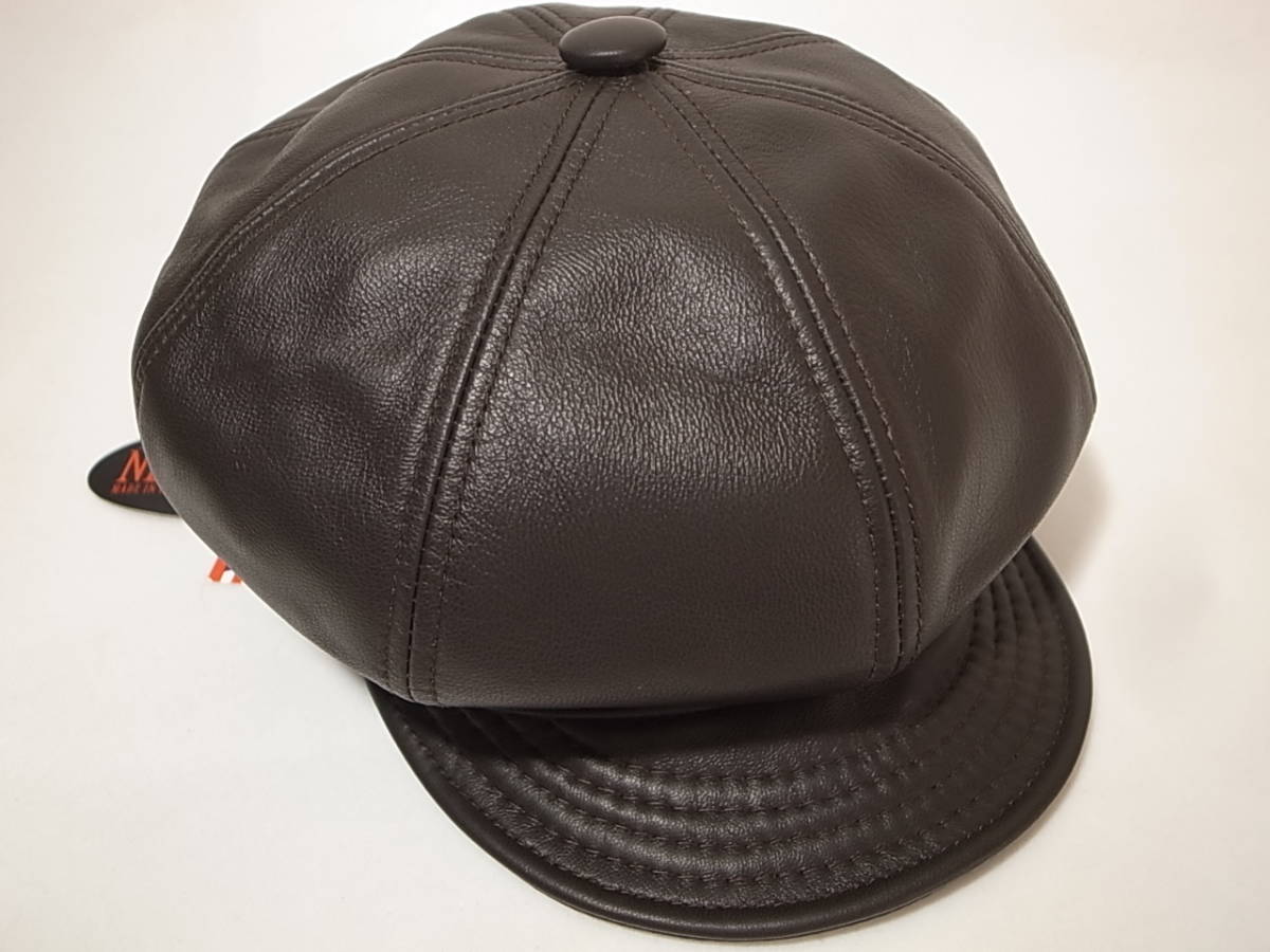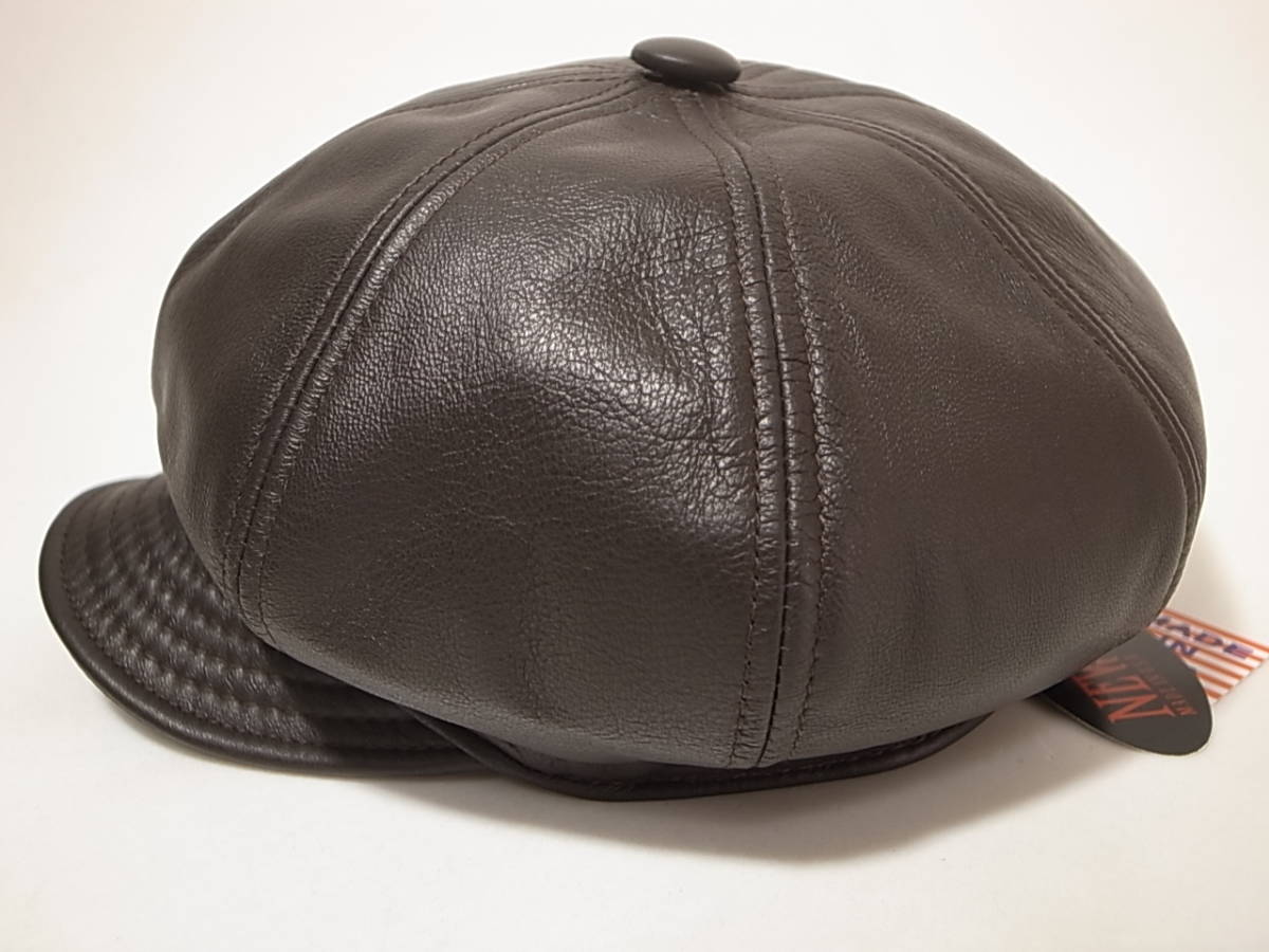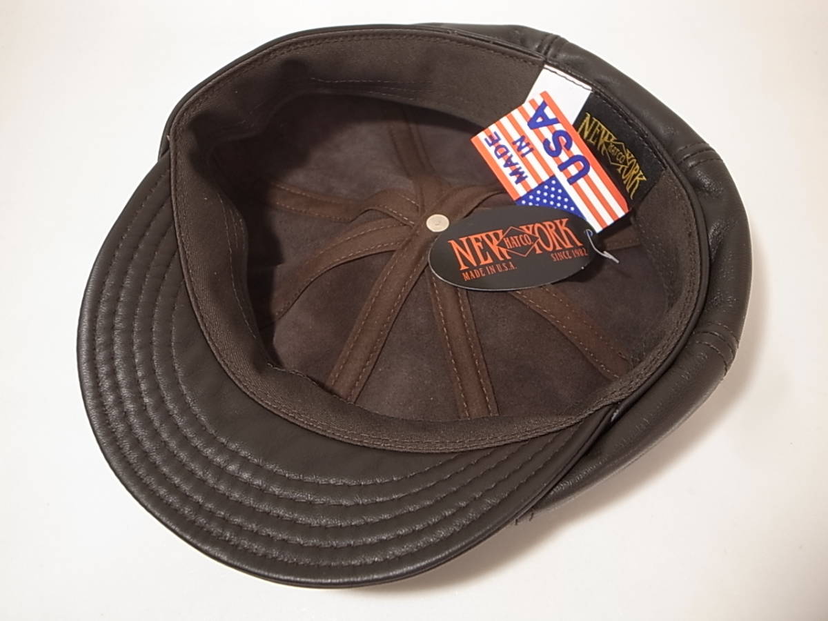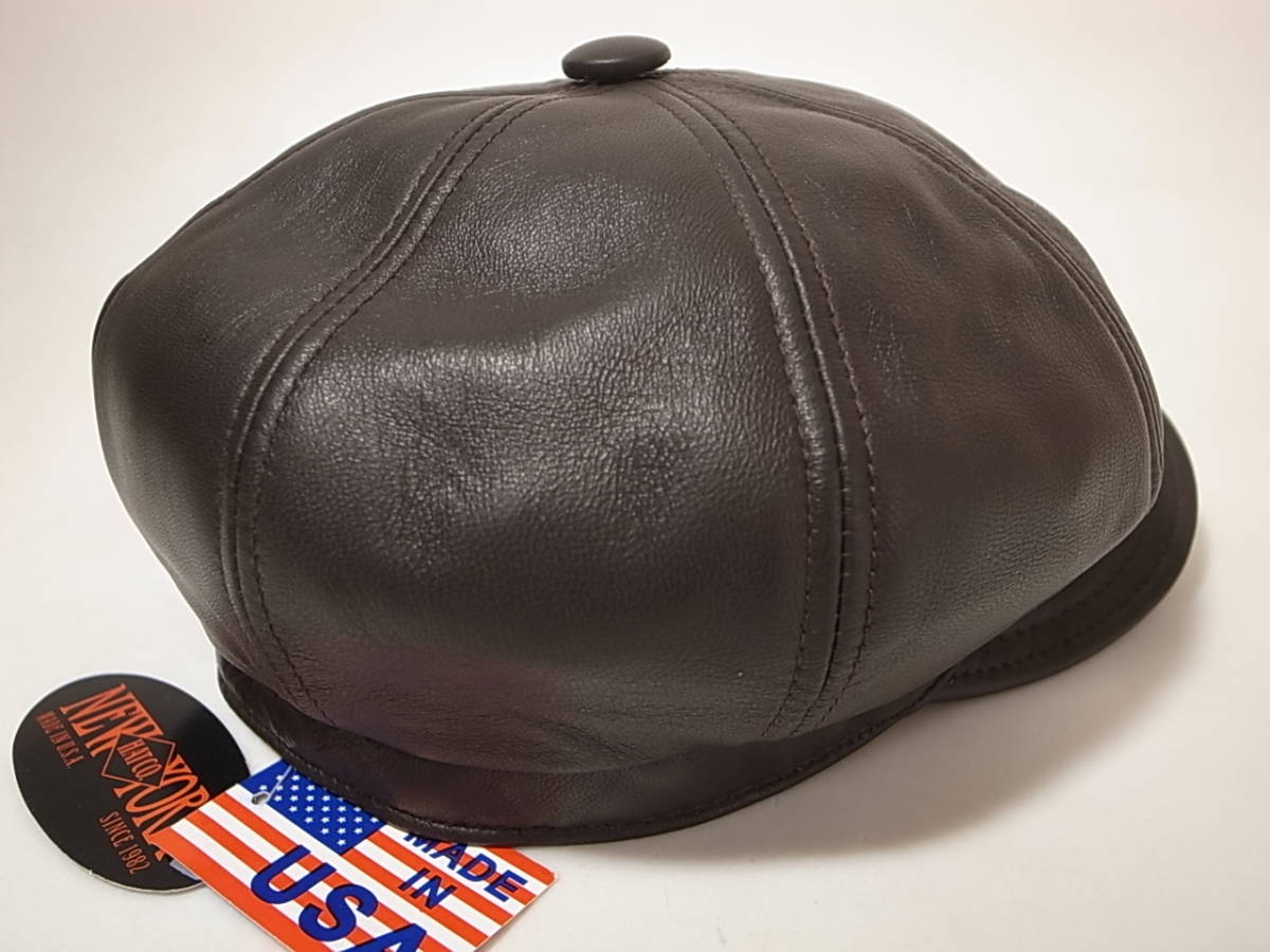 【送料無料 即決】New York HatニューヨークハットNewYorkHat USA製 Lambskin Spitfire 本革製 レザー素材キャスケット 茶 ブラウン XL新品