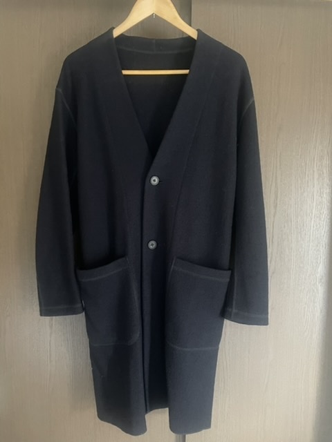 ウール、メルトン一枚仕立て、サラッ気軽に羽織れるのオシャレなデザイン、サイズ46で、通常の Mサイズとお考え下さい。タートルや、今定番のバンドカラーのシャツなどにピッタリです。色は濃紺、使用回数少なく美品だと思います。あくまで中古です。神経質な方は入札をお控え下さい。ゆうパック着払いです。