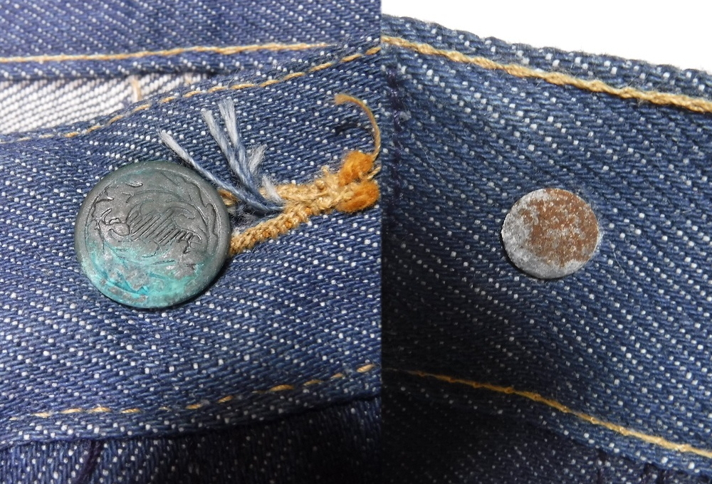 商品情報 | 90s デッドストック トップボタン青カビ トップボタン裏錆びあり 真ん中に折り目が入ってます 綿100% MADE IN U.S.A | ||||||